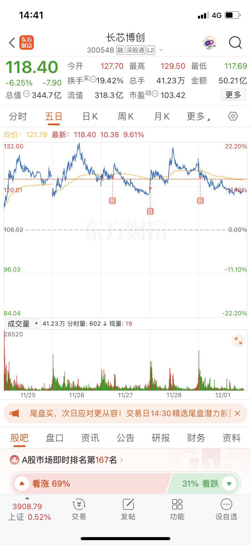 $长芯博创(SZ300548)$ 浮盈加仓,一把亏成