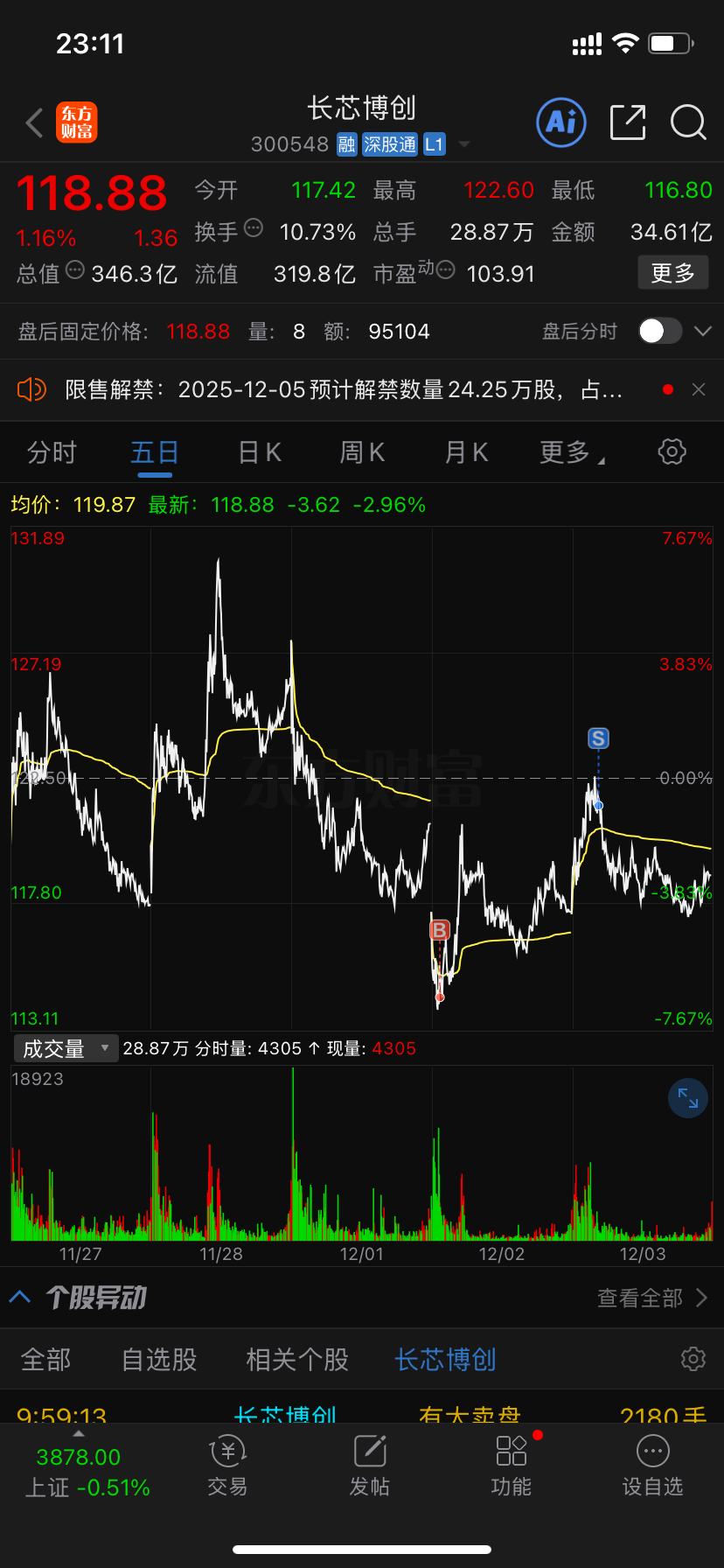 $长芯博创(SZ300548)$ 撤了,这种票不适合长呆,谷歌不跟、CPO也不跟、英伟达也不跟,那还做啥,做个短差割割散户