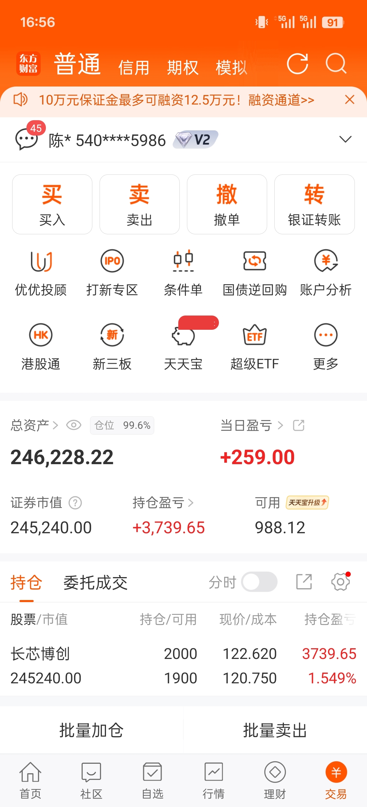 持有长芯博创第二天,今天加仓100股,第一目标150元!