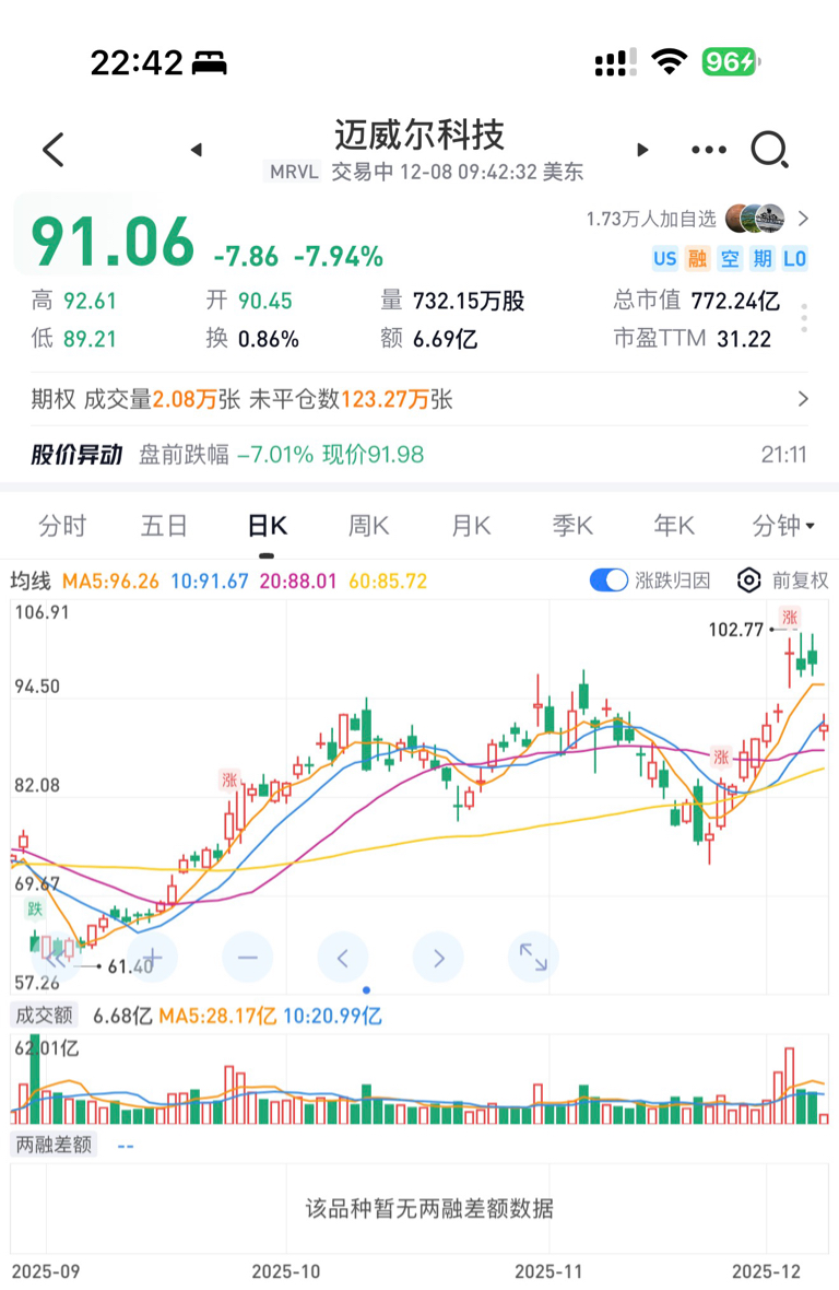 $长芯博创(SZ300548)$ 迈威尔大跌 明天我先跑