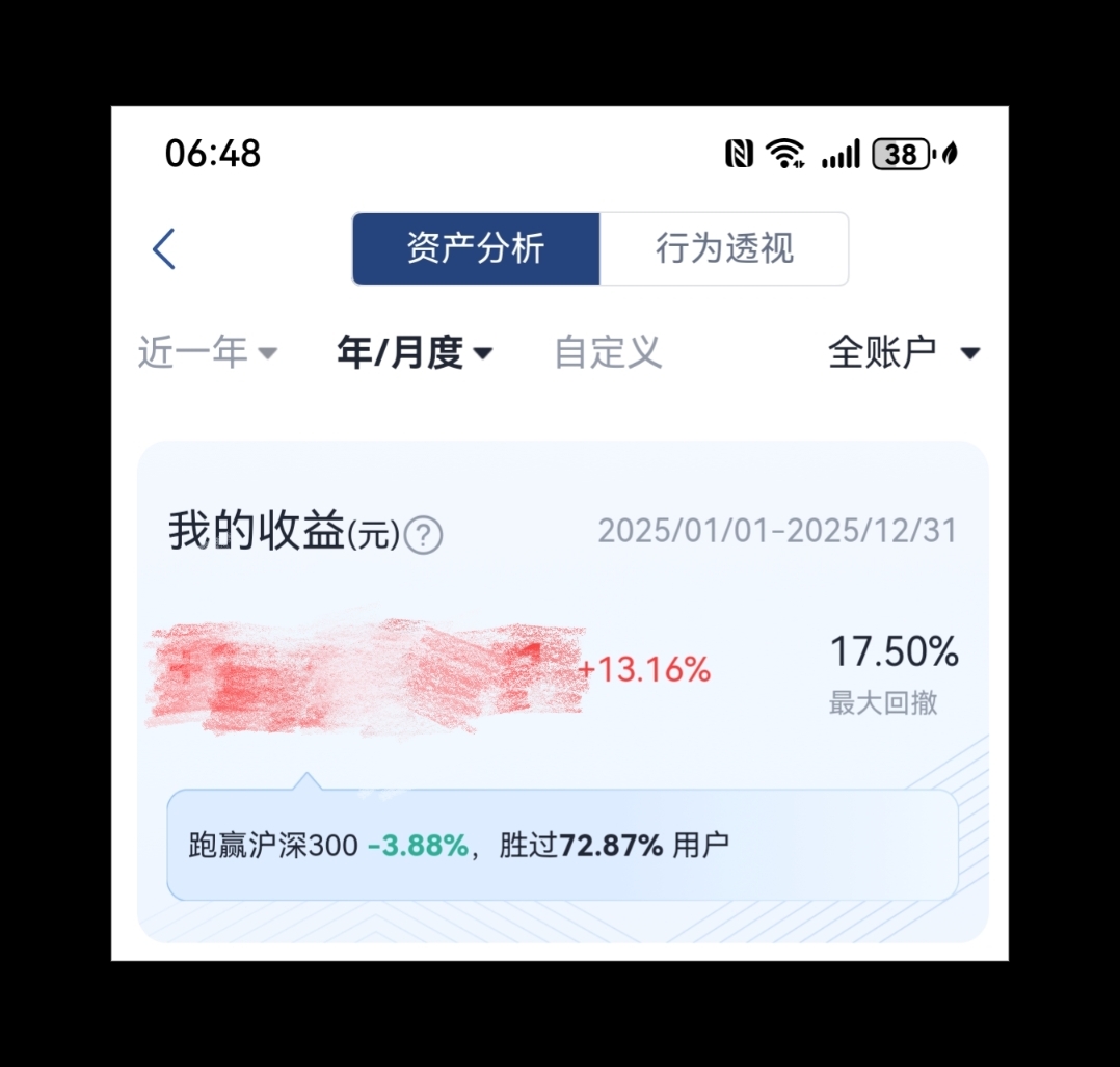 2025圆满结束,年收益13.16%,2026继续加油,再创佳绩!祝大家新年快乐,万事如意!收益红多多