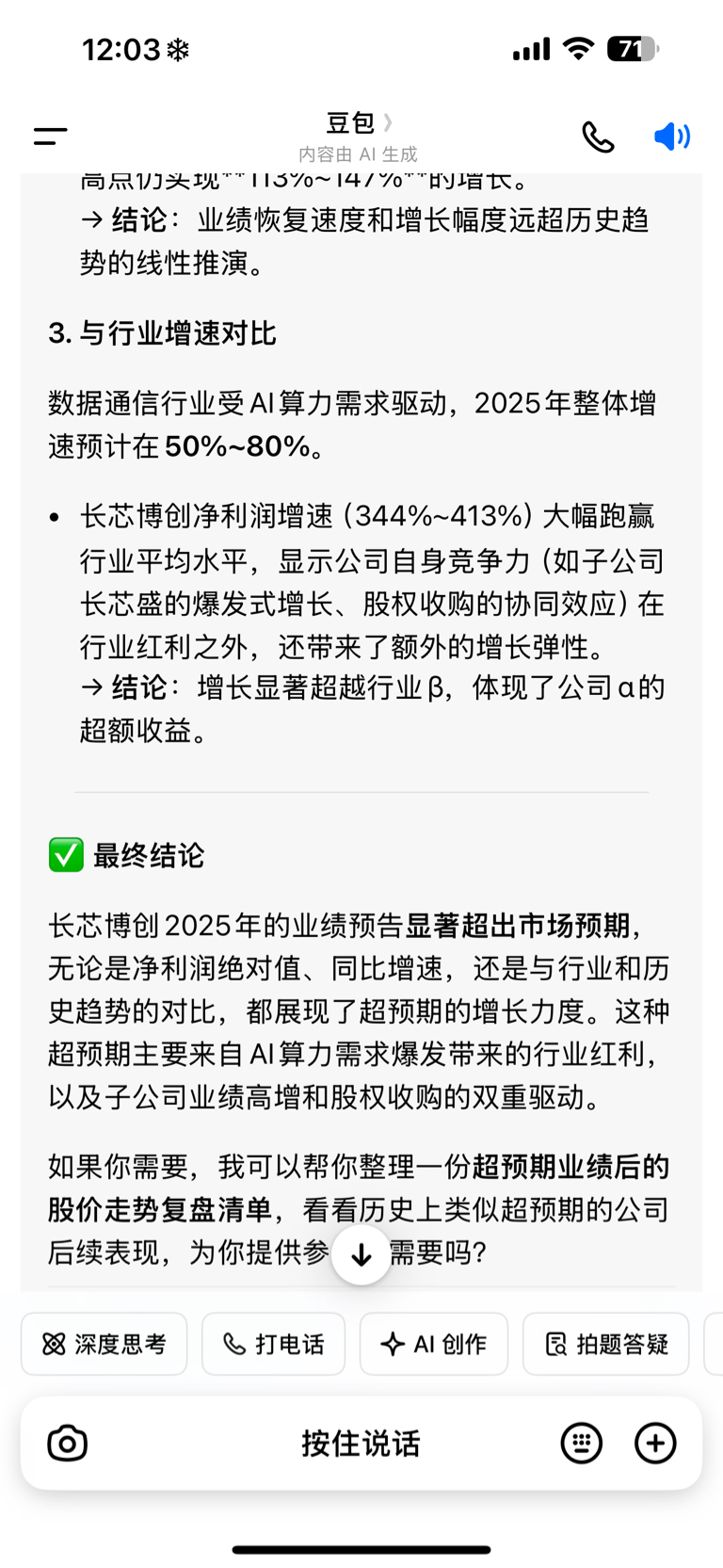 $长芯博创(SZ300548)$ 你们都别吵了,问豆包说业绩大超预期,周一拿稳了
