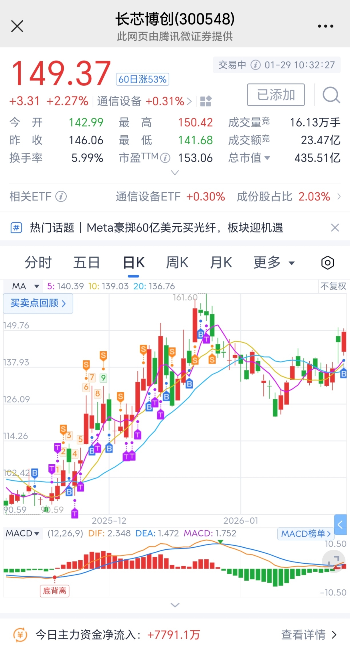 $长芯博创(SZ300548)$ 又买回来了,调整了一段时间了,感觉要再次冲上160了