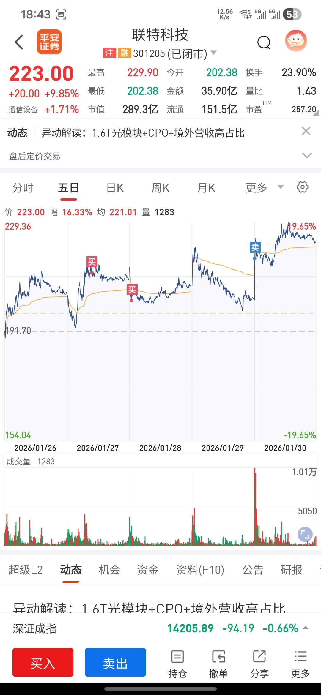 联特昨天跌成狗了;心都崩了:今天挂的217瞬间过了;没来得及撤单