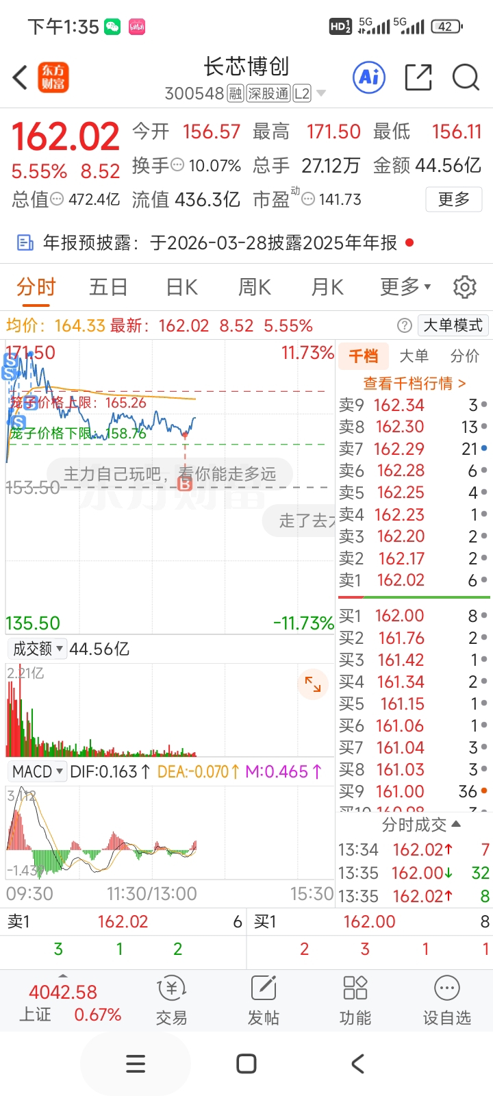 $长芯博创(SZ300548)$ 还好昨天停住了,还加了两手,今天出了4手,又入了一手