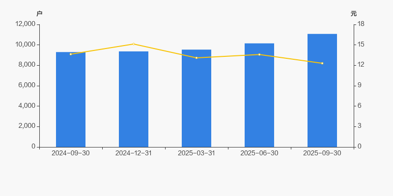 2024年9月30日至今,公司股东户数显著增长,区间涨幅为19.13%。2024年9月30日至2025年9月30日区间股价下降9.82%。