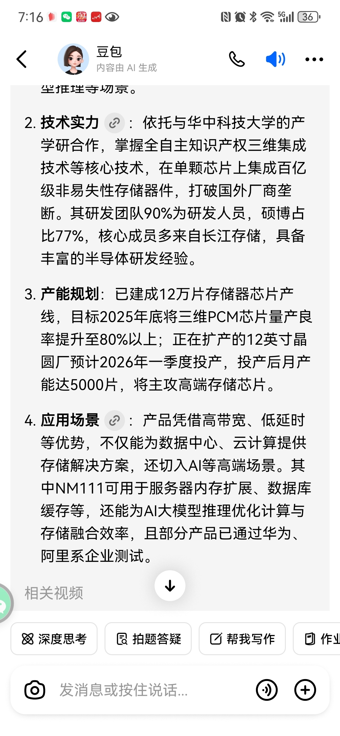 控股子公司新存科技..存储芯片已经量产。已通过华为,阿里巴巴,百度服务器试点应用