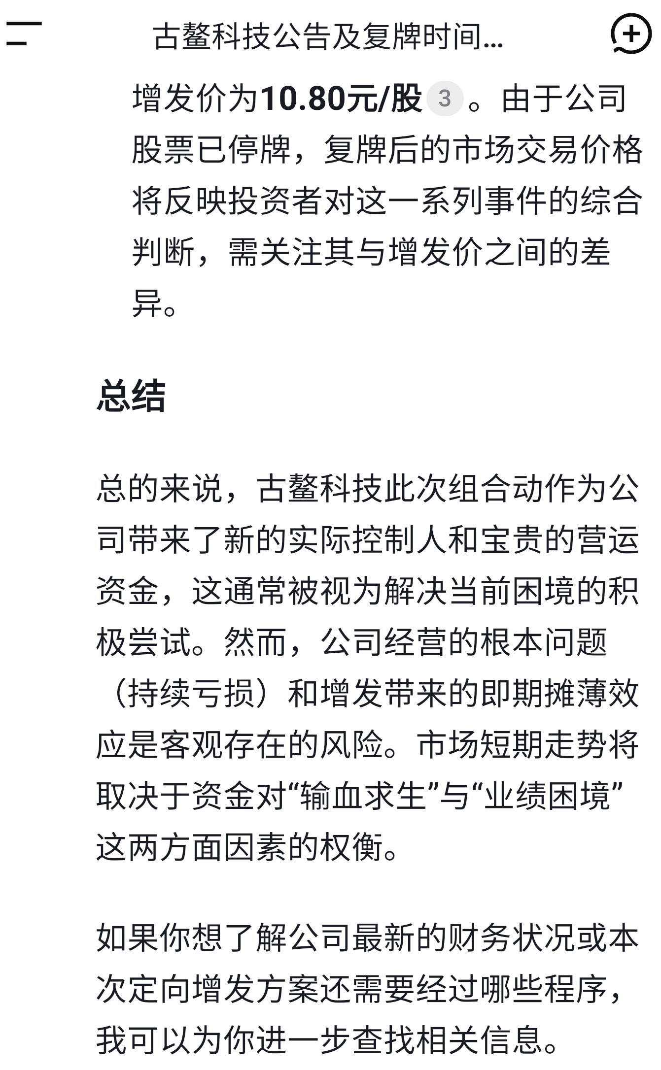 $古鳌科技(SZ300551)$ $古鳌科技(300551)$ 利好,兄弟们!1. 控制权稳定:新任实控人通过“受托表决权+现金认购增发”的方式巩固控制权,有助于稳定公司治理结构。2. 注入营运资金:公司处于亏损状态,本次增发募资4.32亿元全部用于补充流动资金,能缓解资金压力,为后续经营提供支持。