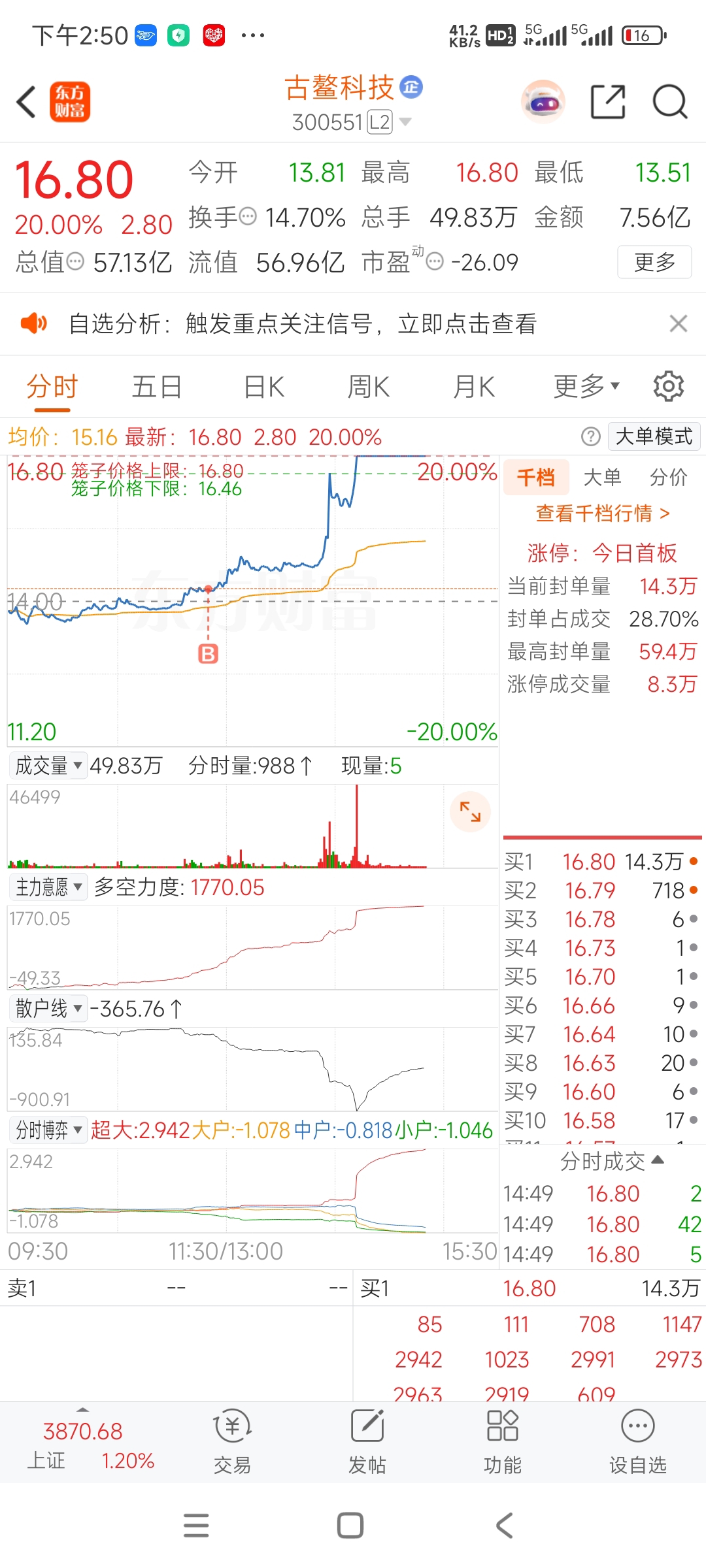 $古鳌科技(SZ300551)$ 玩的就是思维,重组之后炸板下跌,今天第三天事不过三,果然让我逮到了