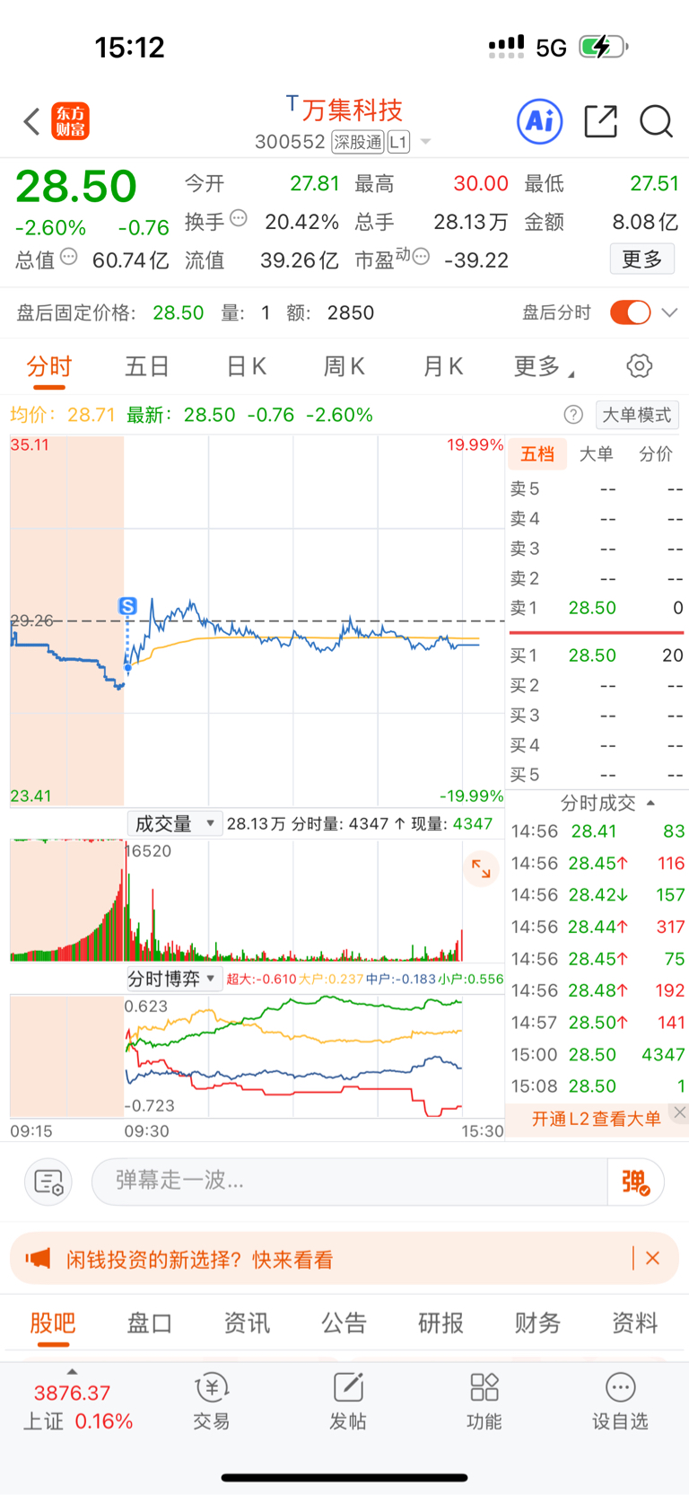$万集科技(SZ300552)$ 发誓以后一定按纪律执行,昨天收盘盘后交易是哪个傻儿卖给我的,自己站出来