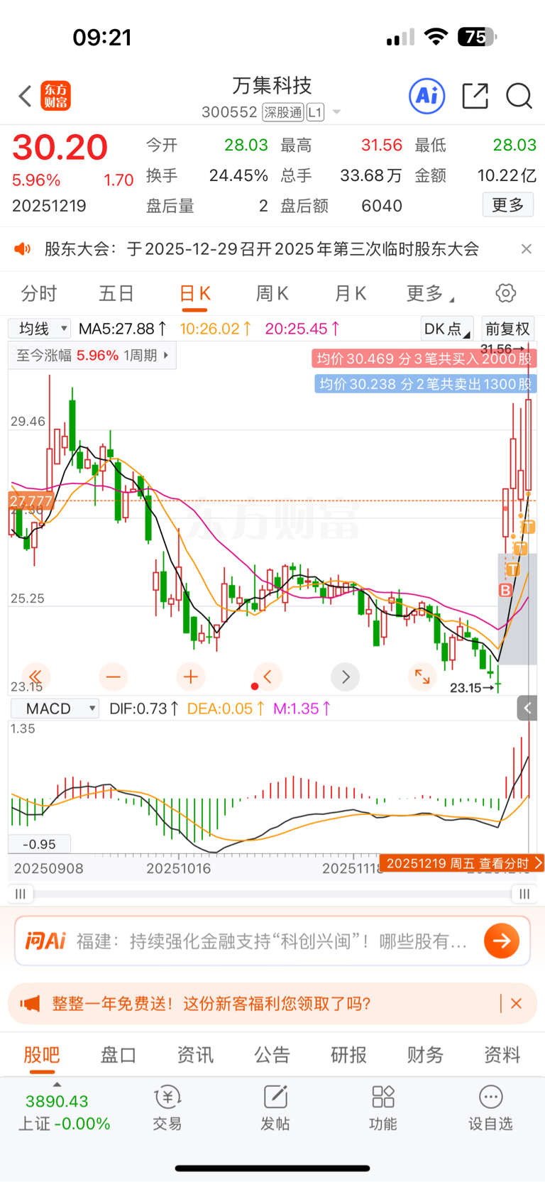 $万集科技(SZ300552)$ 虽然上个交易日做了个反T,但主力你高开,我32就跑