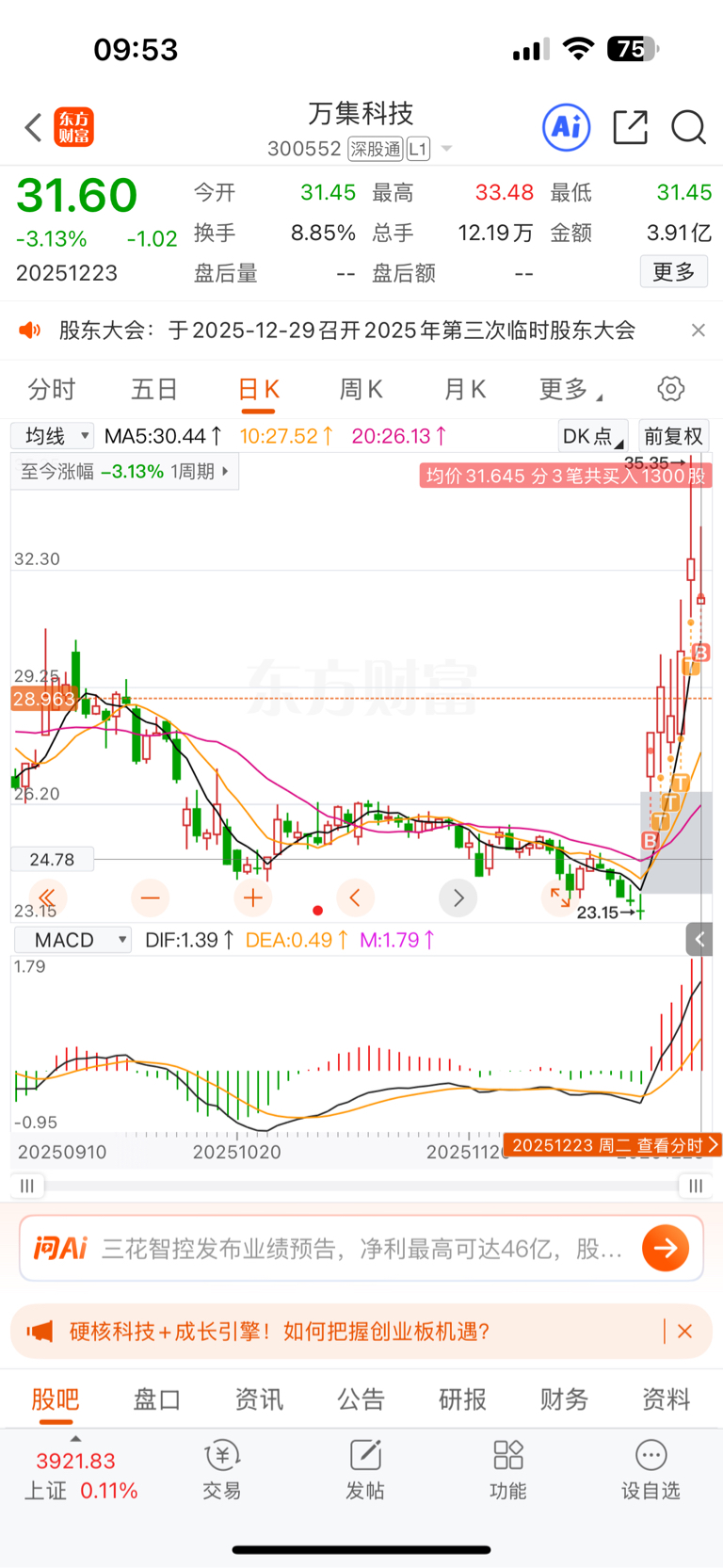 $万集科技(SZ300552)$ 加仓,他还能跌破31不成