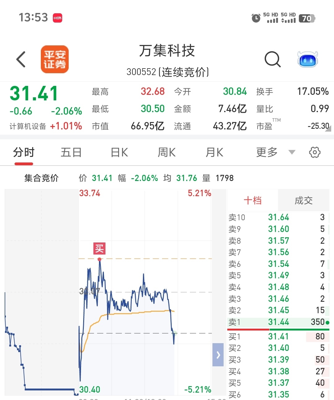 $万集科技(SZ300552)$ 别进,明天大跌开盘。赔死我了今天,