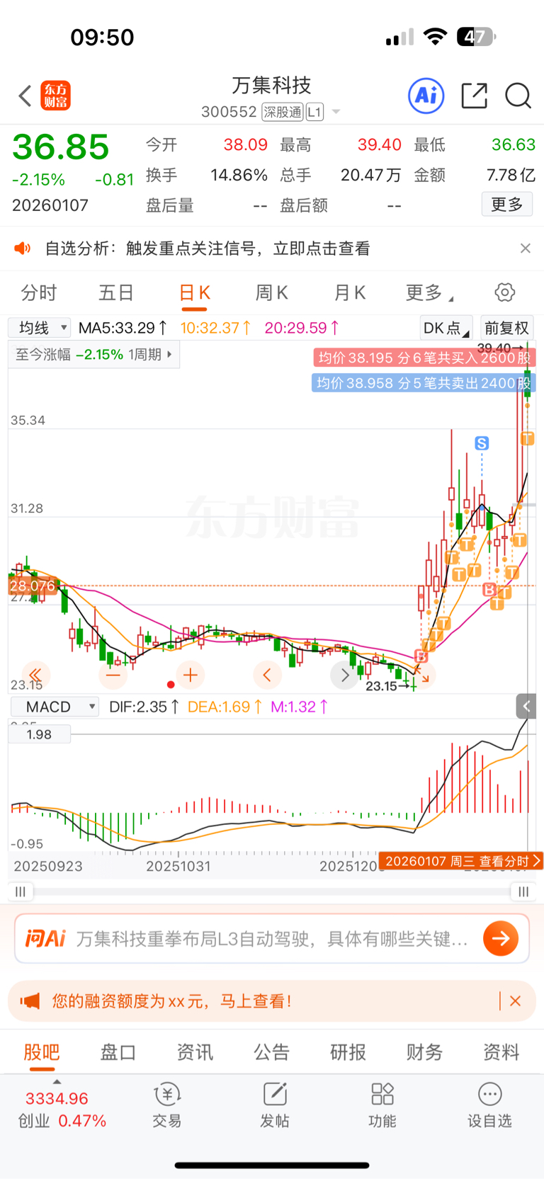 $万集科技(SZ300552)$ 先做个小T,他还能跌6个点不成