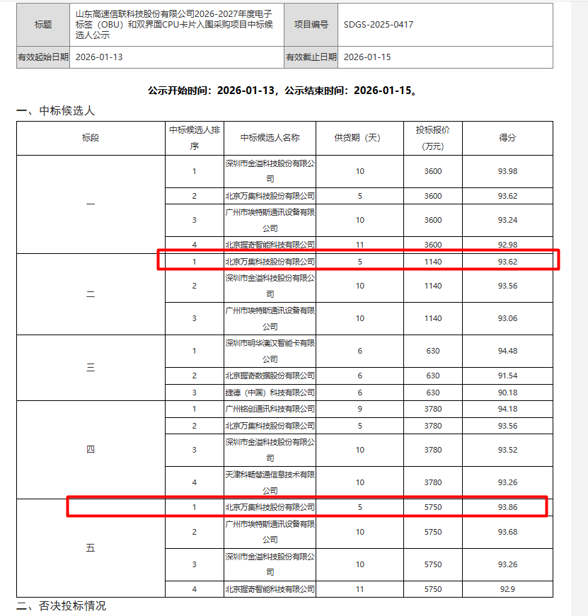 万集科技今年1月就已中标6880万,远超2025年总和!!!