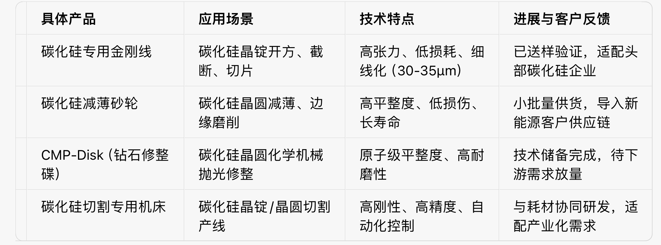 3. 国产替代:目前碳化硅切割耗材主要依赖进口,三超的国产产品已进入头部客户验证阶段,替代空间明确。