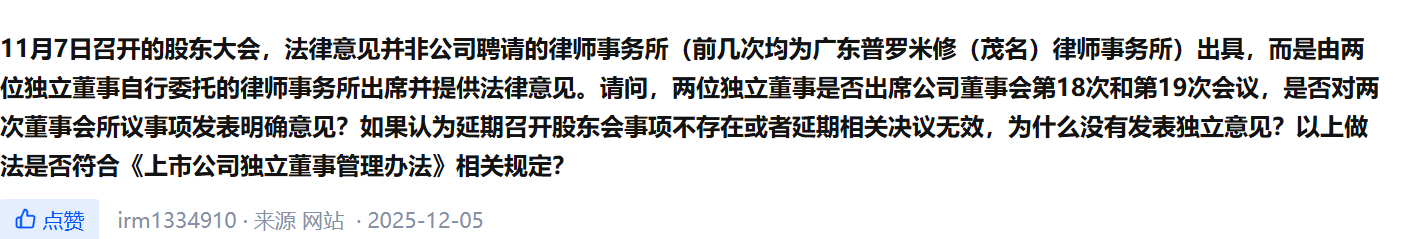 公司合规性被人在互动易平台发问质疑,半个月没有回复
