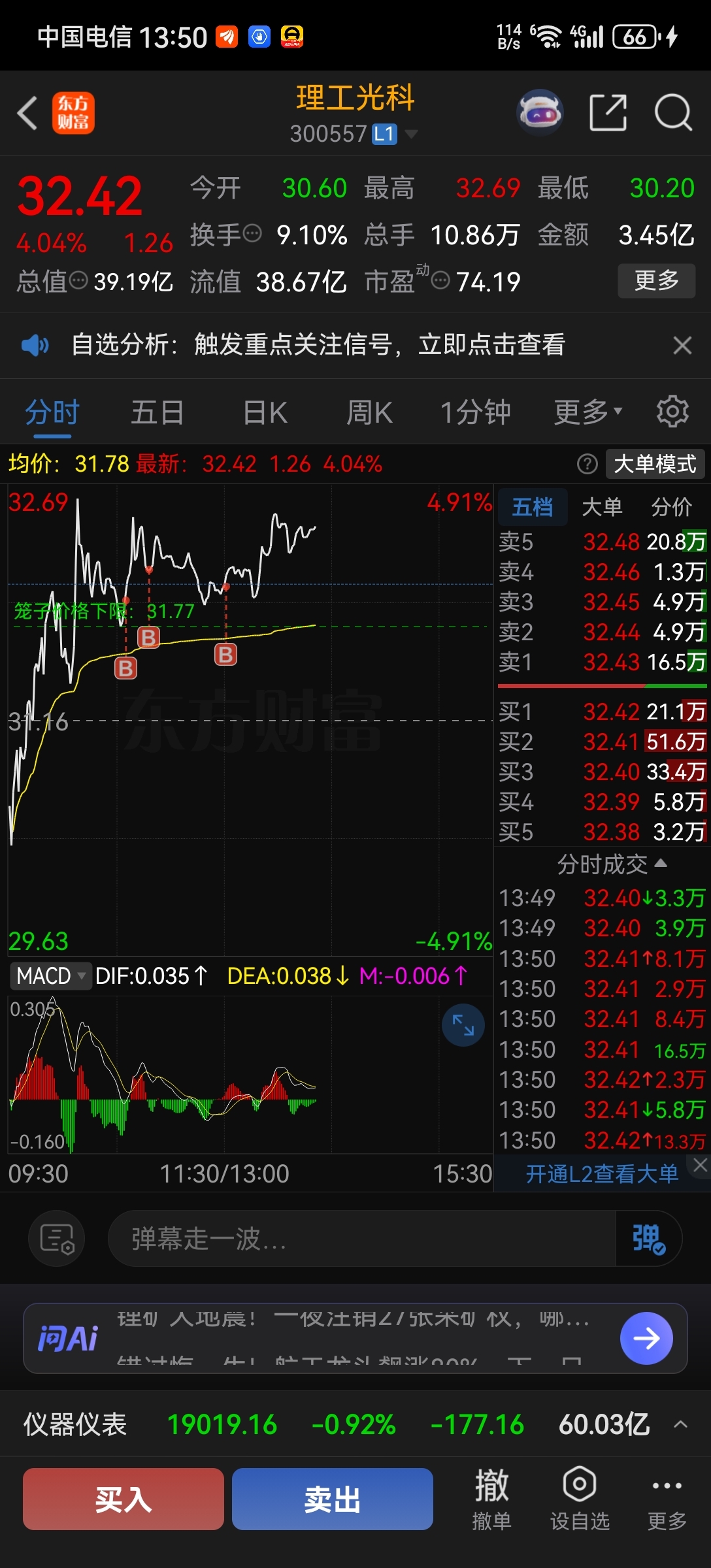 $理工光科(SZ300557)$ 今天进来,明天看多