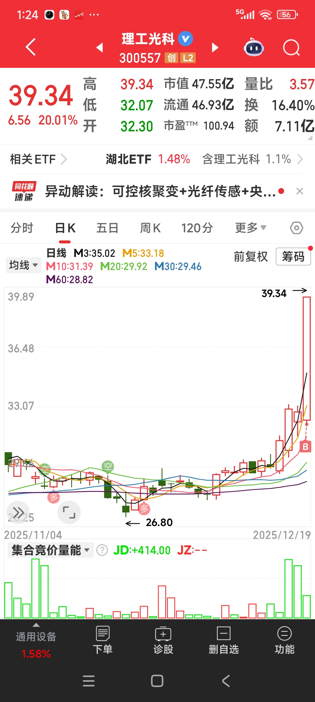 $理工光科(SZ300557)$ 看图形买股!买点显示不准,追高买入!