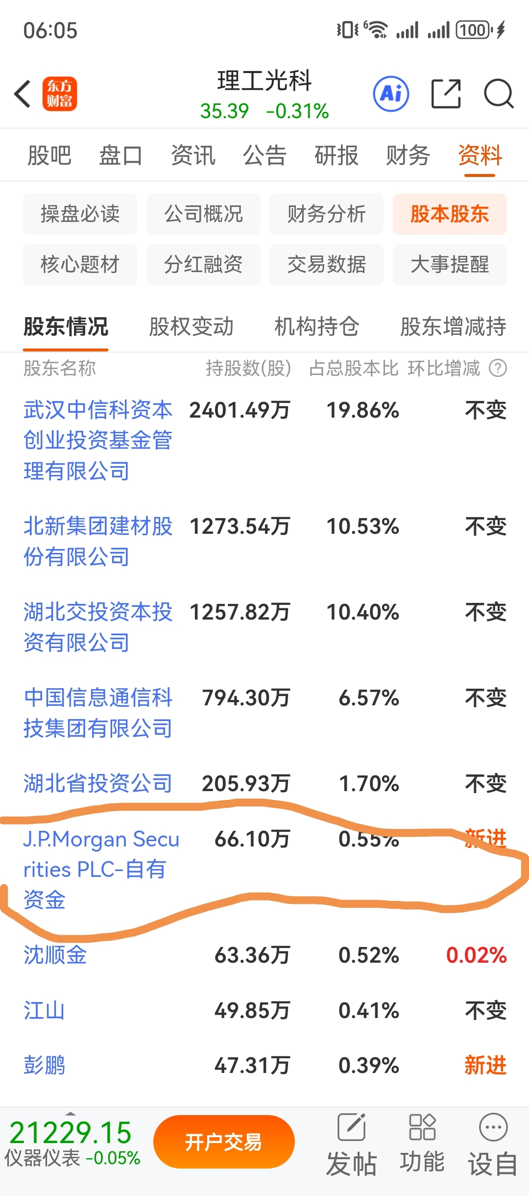 $理工光科(SZ300557)$ 摩根大通持股,后市可期