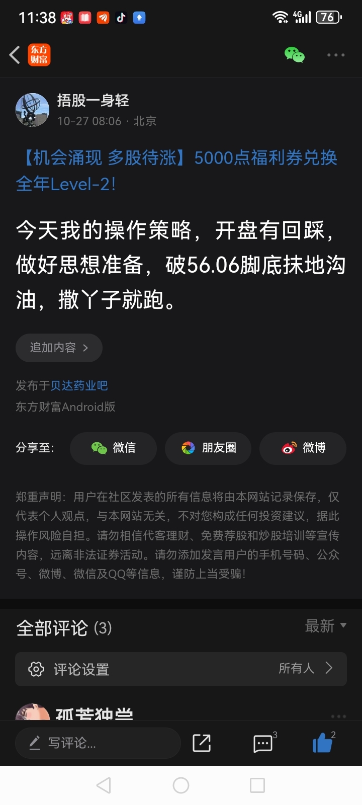 温馨提示: 1.根据《证券法》规定,禁止编造、传播虚假信息或者误导性信息,扰乱证券市场;2.用户在本社区发表的所有资料、言论等仅代表个人观点,与本网站立场无关,不对您构成任何投资建议。用户应基于自己的独立判断,自行决定证券投资并承担相应风险。《东方财富社区管理规定》