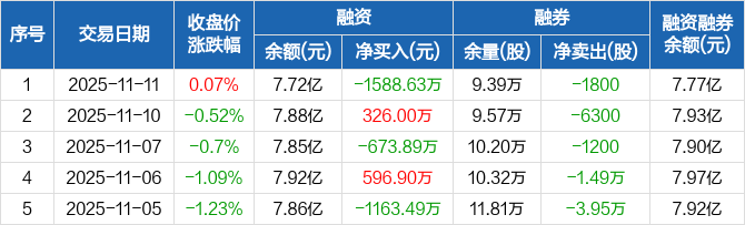 贝达药业:融资净偿还1588.63万元,融资余额7.72亿元(11-11)