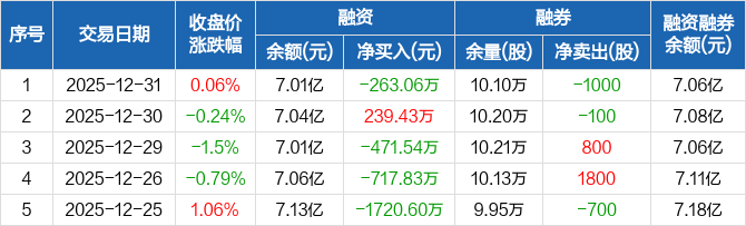 贝达药业:融资净偿还263.06万元,融资余额7.01亿元(12-31)
