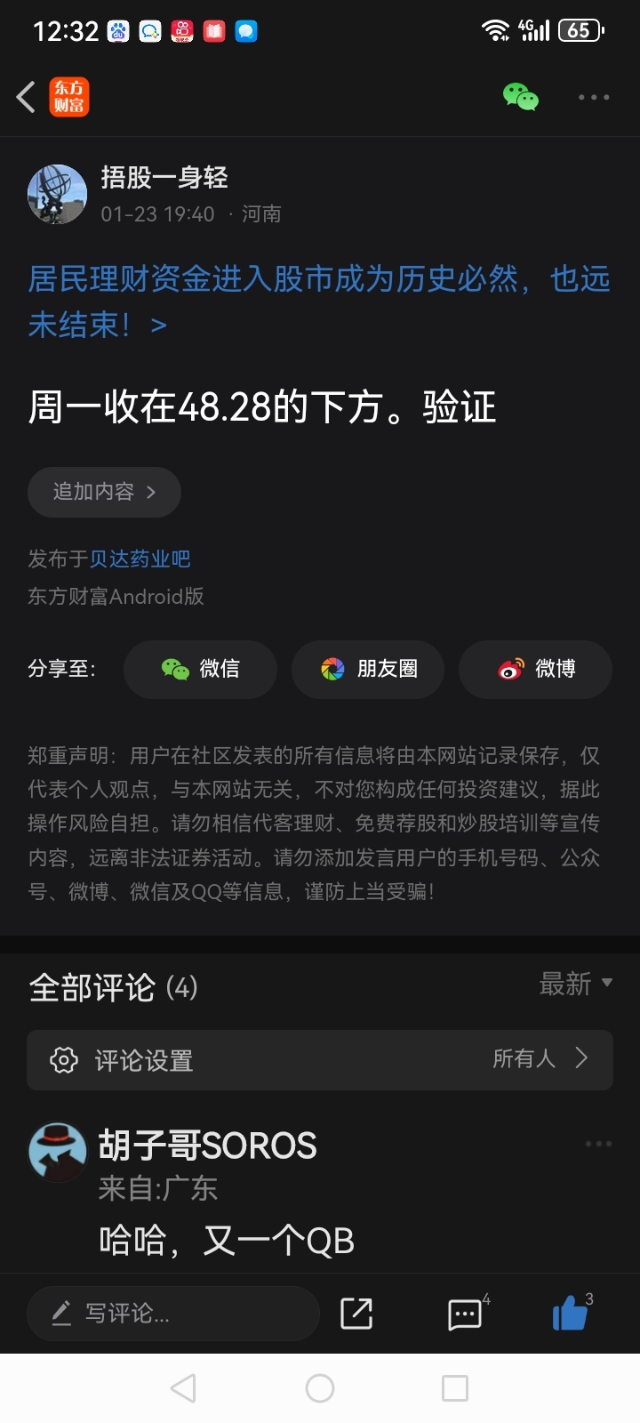 温馨提示: 1.根据《证券法》规定,禁止编造、传播虚假信息或者误导性信息,扰乱证券市场;2.用户在本社区发表的所有资料、言论等仅代表个人观点,与本网站立场无关,不对您构成任何投资建议。用户应基于自己的独立判断,自行决定证券投资并承担相应风险。《东方财富社区管理规定》