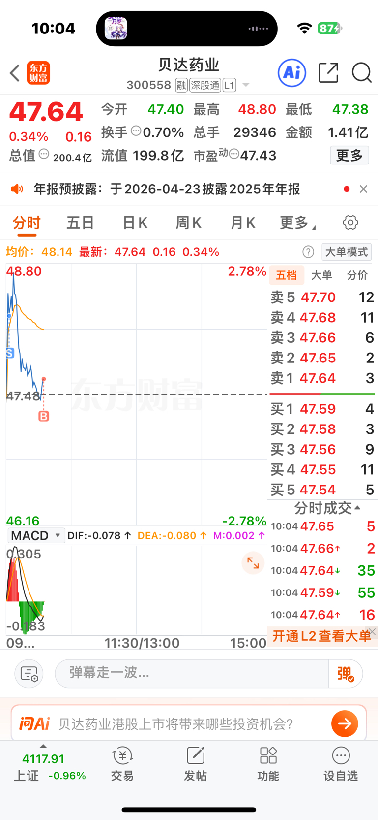 $贝达药业(SZ300558)$ 继续买,上去再卖。