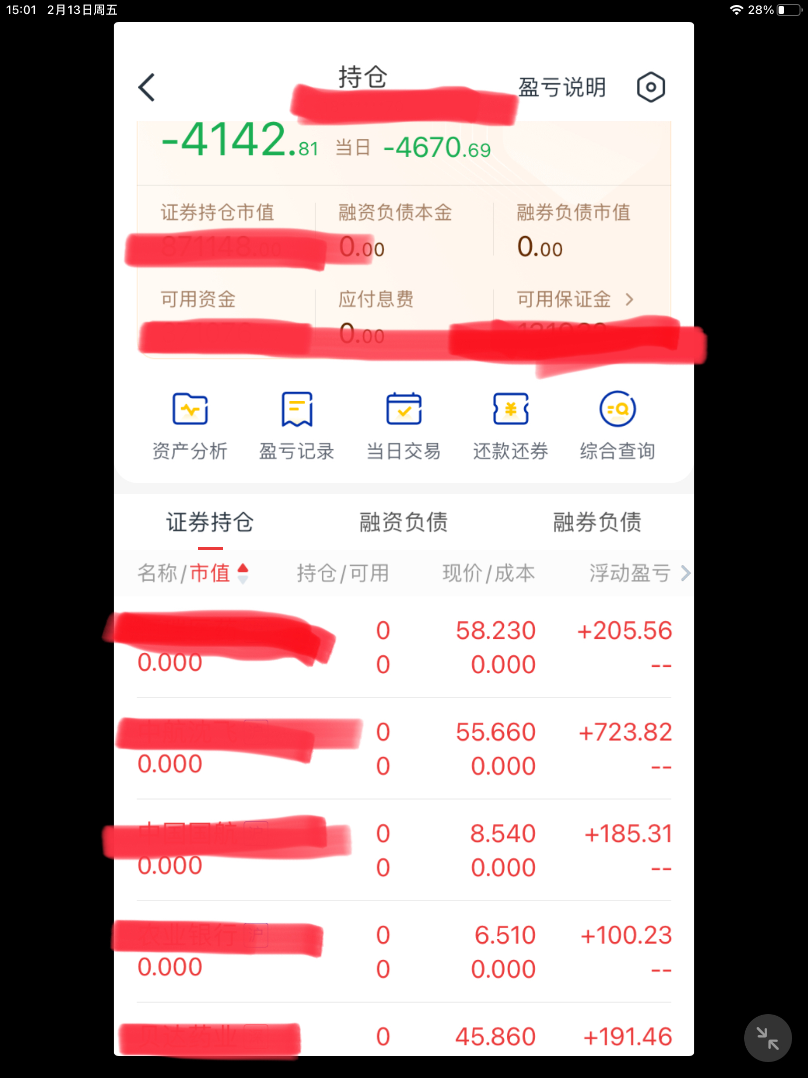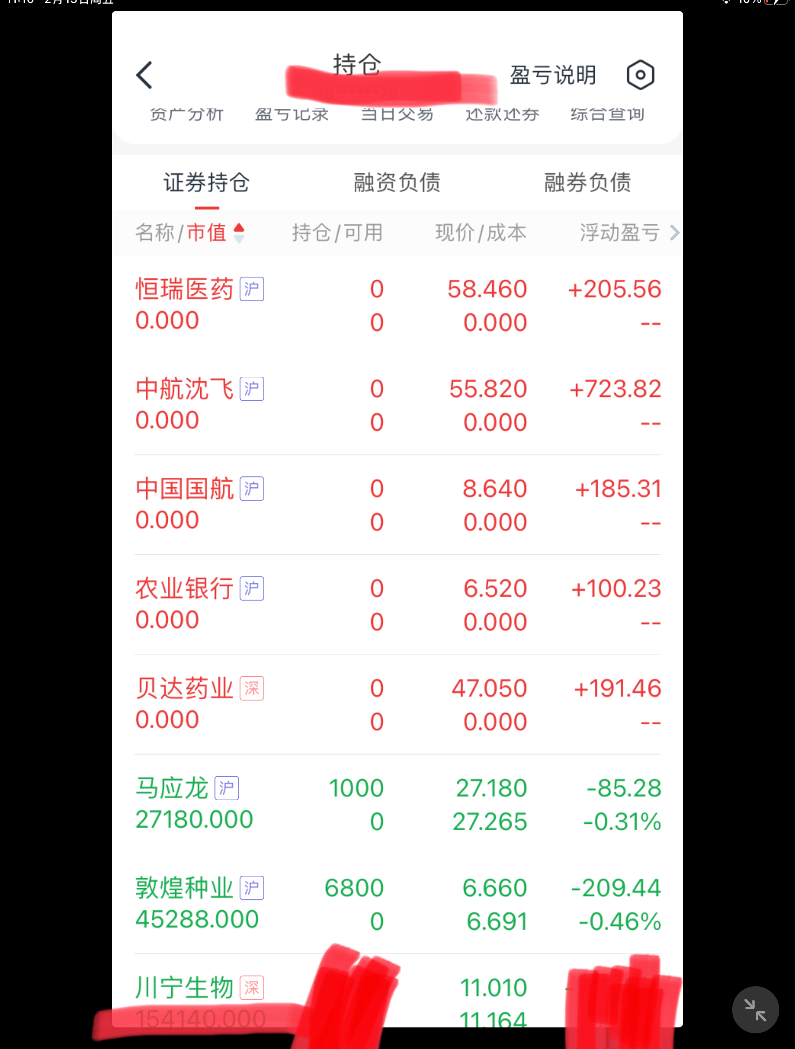 老牛收盘单,七成仓,没融资,今天操作打九十分,,,一是甩了的不亏的几只小赚了,,,空出来了仓位,,,这样,在下跌时加了另三只绿的仓,不足就是把川宁加快了一点,扣十分,,,春节后开市要开门红发红包了