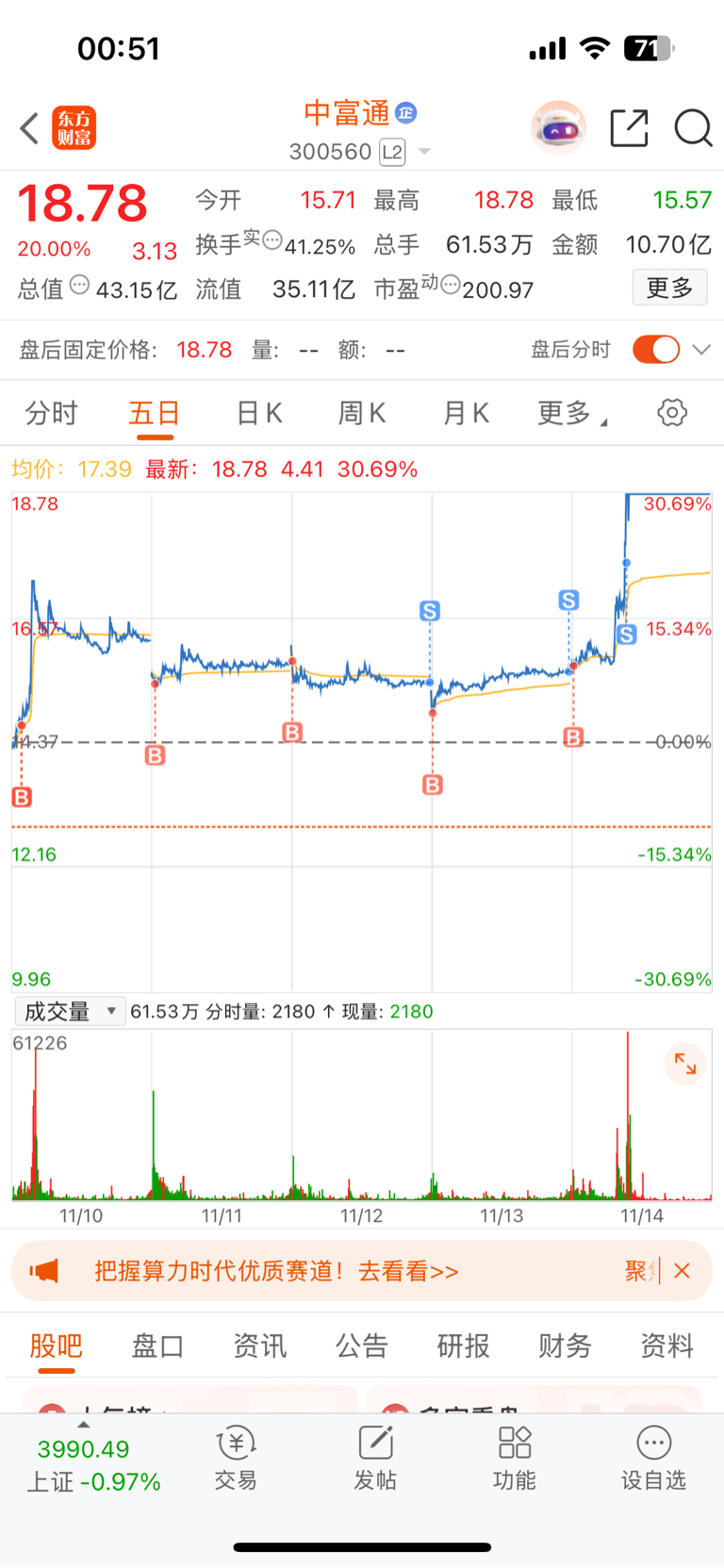 $中富通(SZ300560)$ 周一继续加仓猛干
