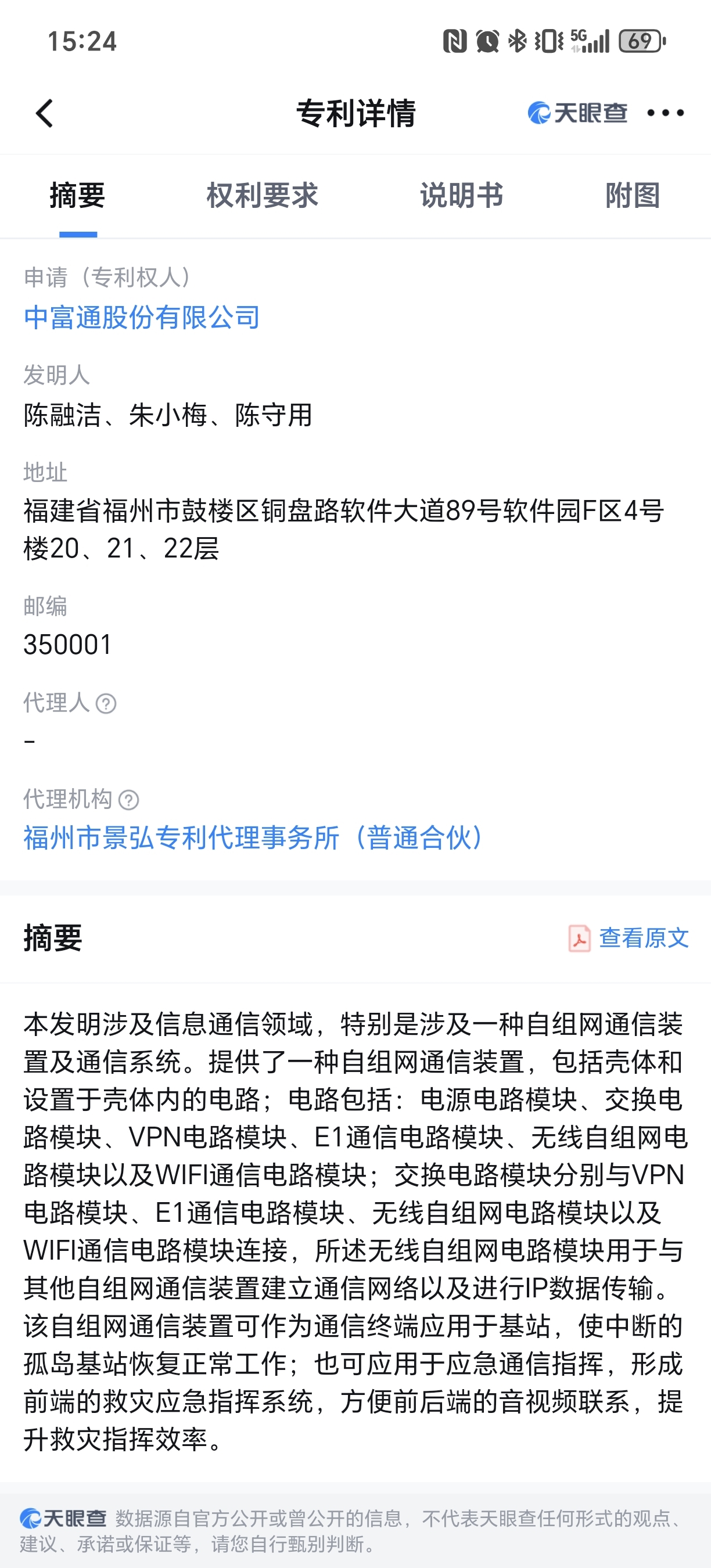 $中富通(SZ300560)$ 不知道这个专利,能否应用于华为mate80Pro的无网通信?