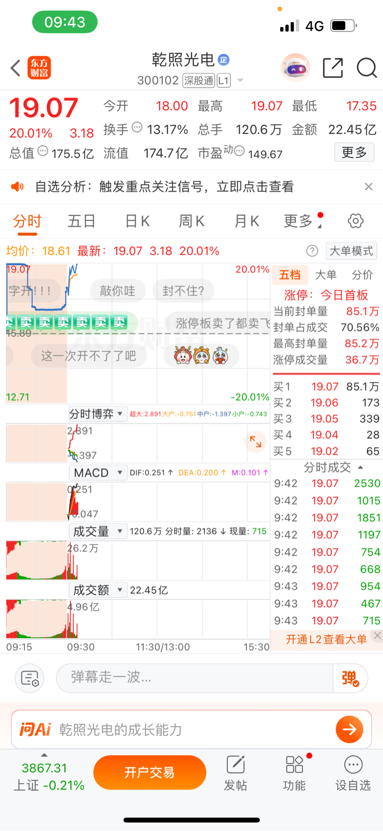 $中富通(SZ300560)$ 卖完中富通,买回乾照光电,正好接上。