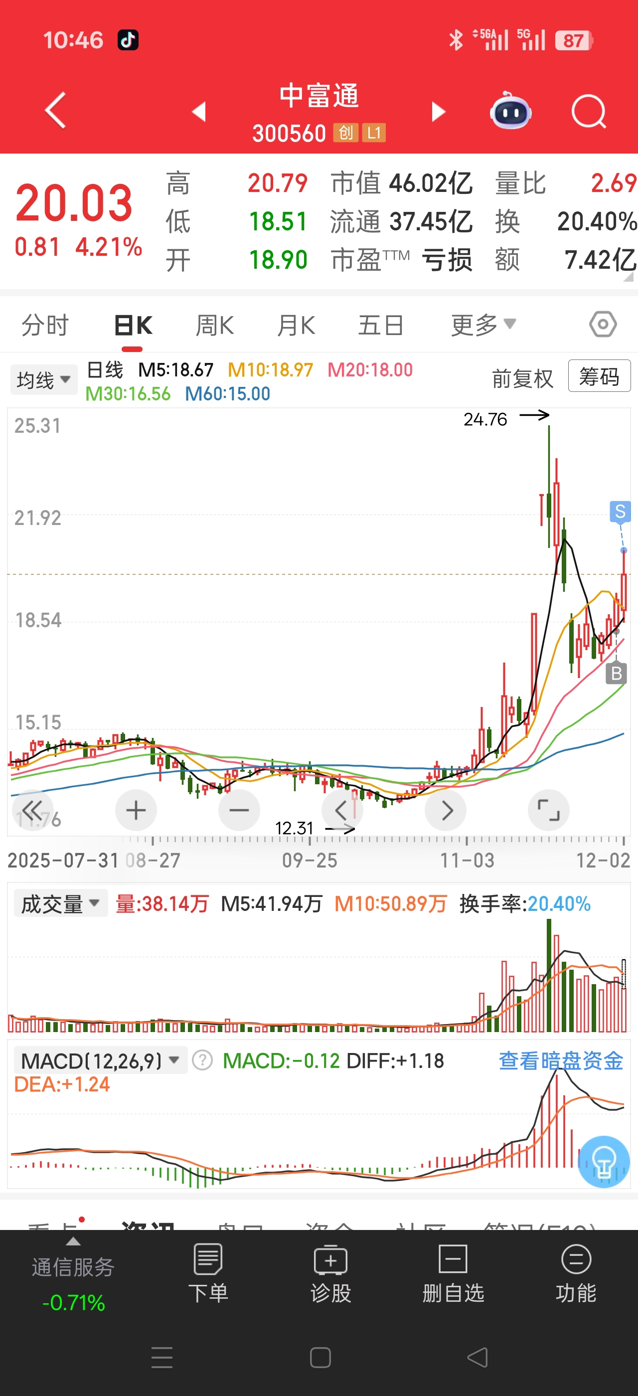 $中富通(SZ300560)$ 昨天上午水下买的,今天7个多点卖了,两天9个多点,谢谢中富通,希望今天涨停,大家都发财。