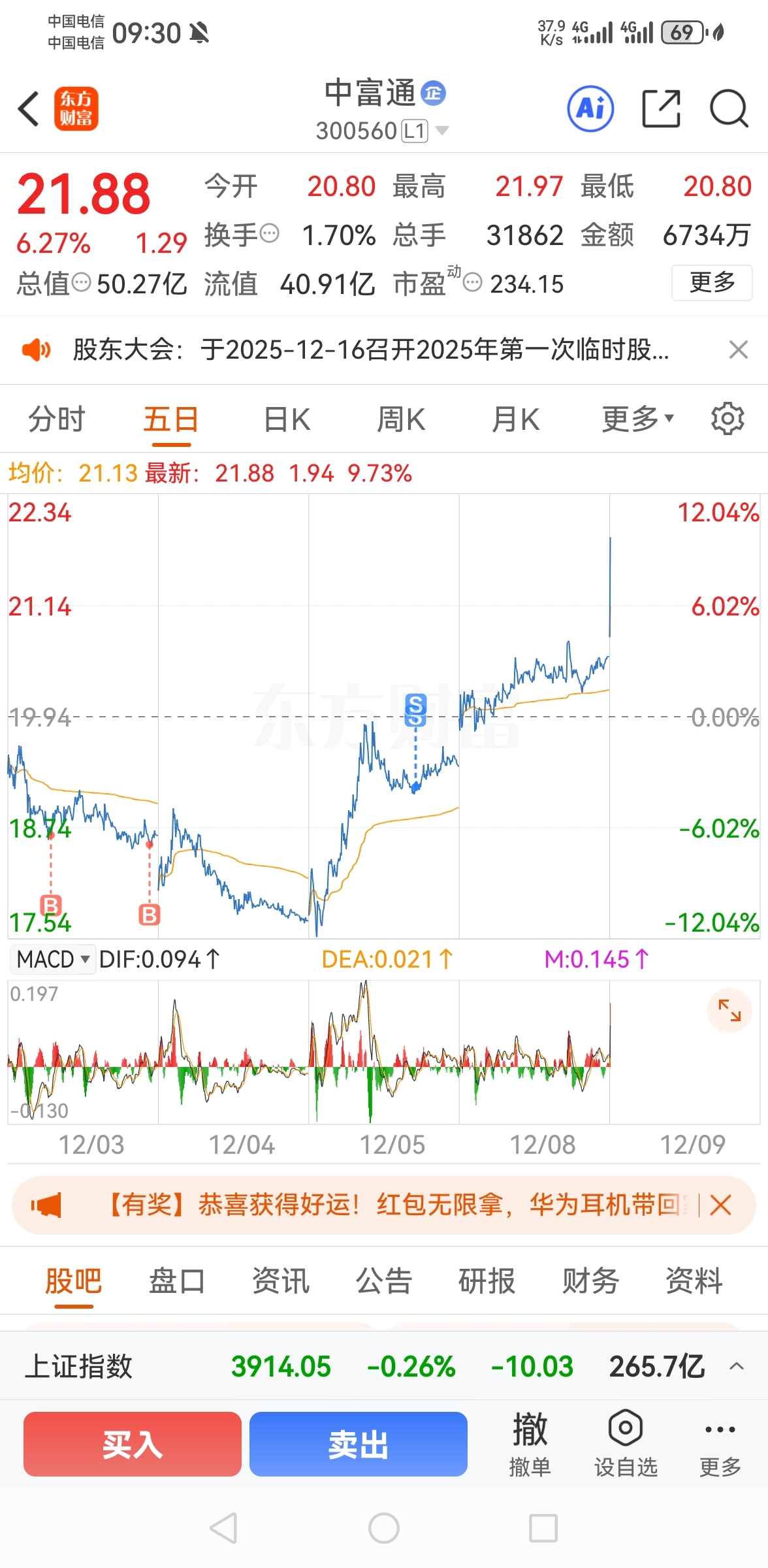 $中富通(SZ300560)$ 拿了一个月,终究还是踏空了