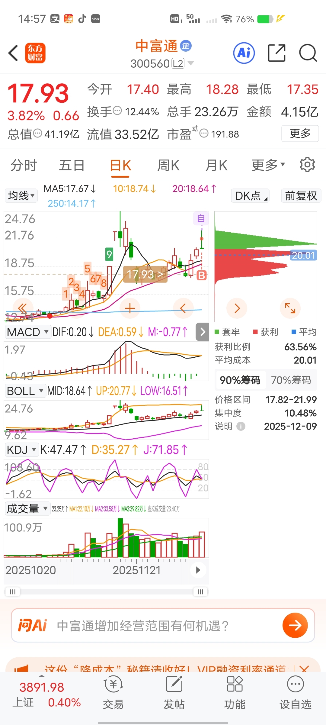$中富通(SZ300560)$ 几乎吃了个跌停20个点