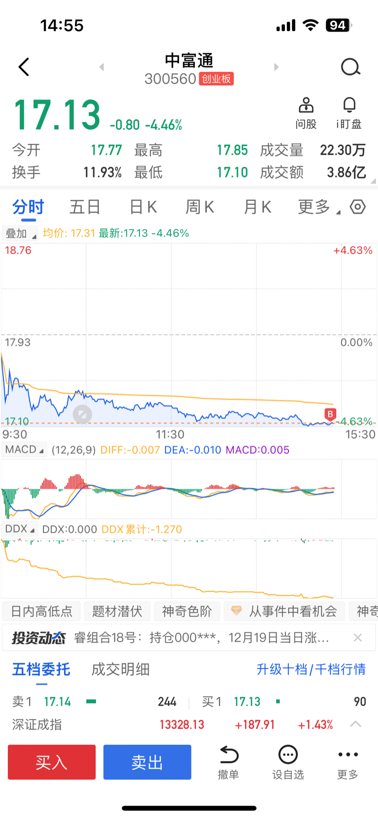 $中富通(SZ300560)$ 尾盘有谁杀进来