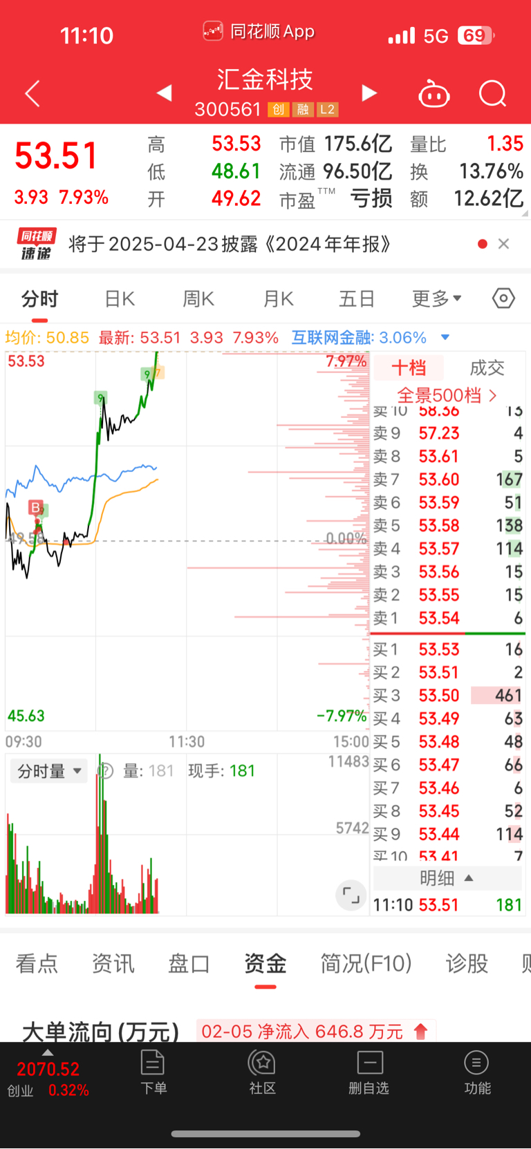 $汇金科技(SZ300561)$ 48的本,今天又加仓了
