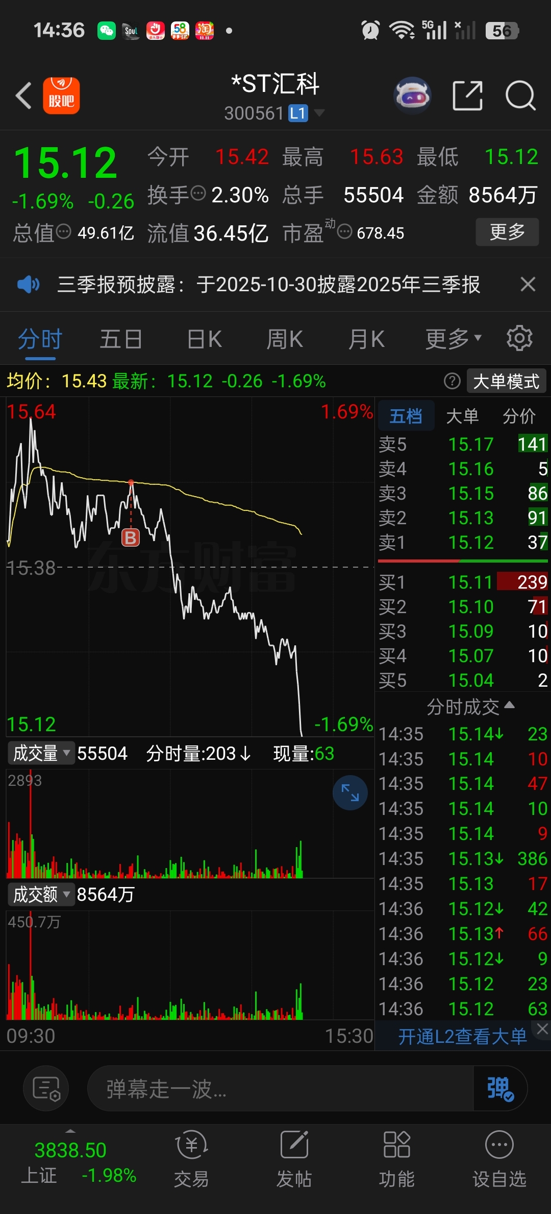 $*ST汇科(SZ300561)$ 补仓又补到了高点
