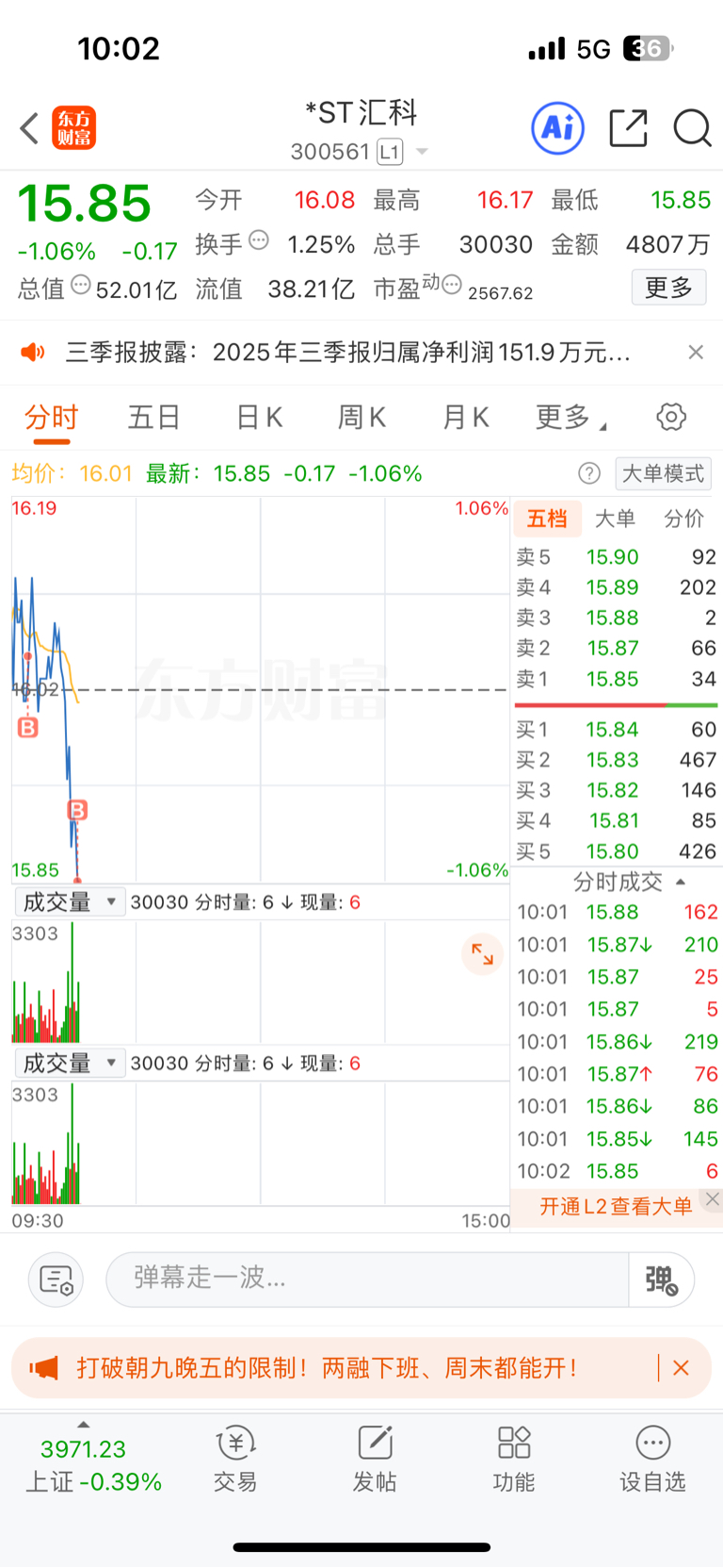 $*ST汇科(SZ300561)$ 敢死队有没有跟我冲,我今天回来了18.50后面还会加