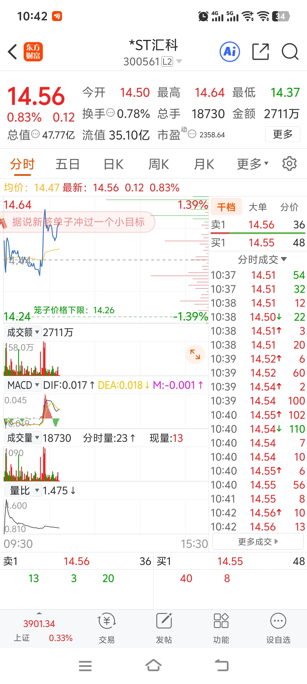 $*ST汇科(SZ300561)$ 要走一波上升了,你们怎么看