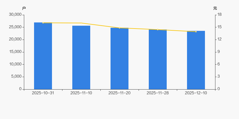 2025年10月31日至今,公司股东户数显著下降,区间跌幅为12.60%。2025年10月31日至2025年12月10日区间股价下降13.37%。