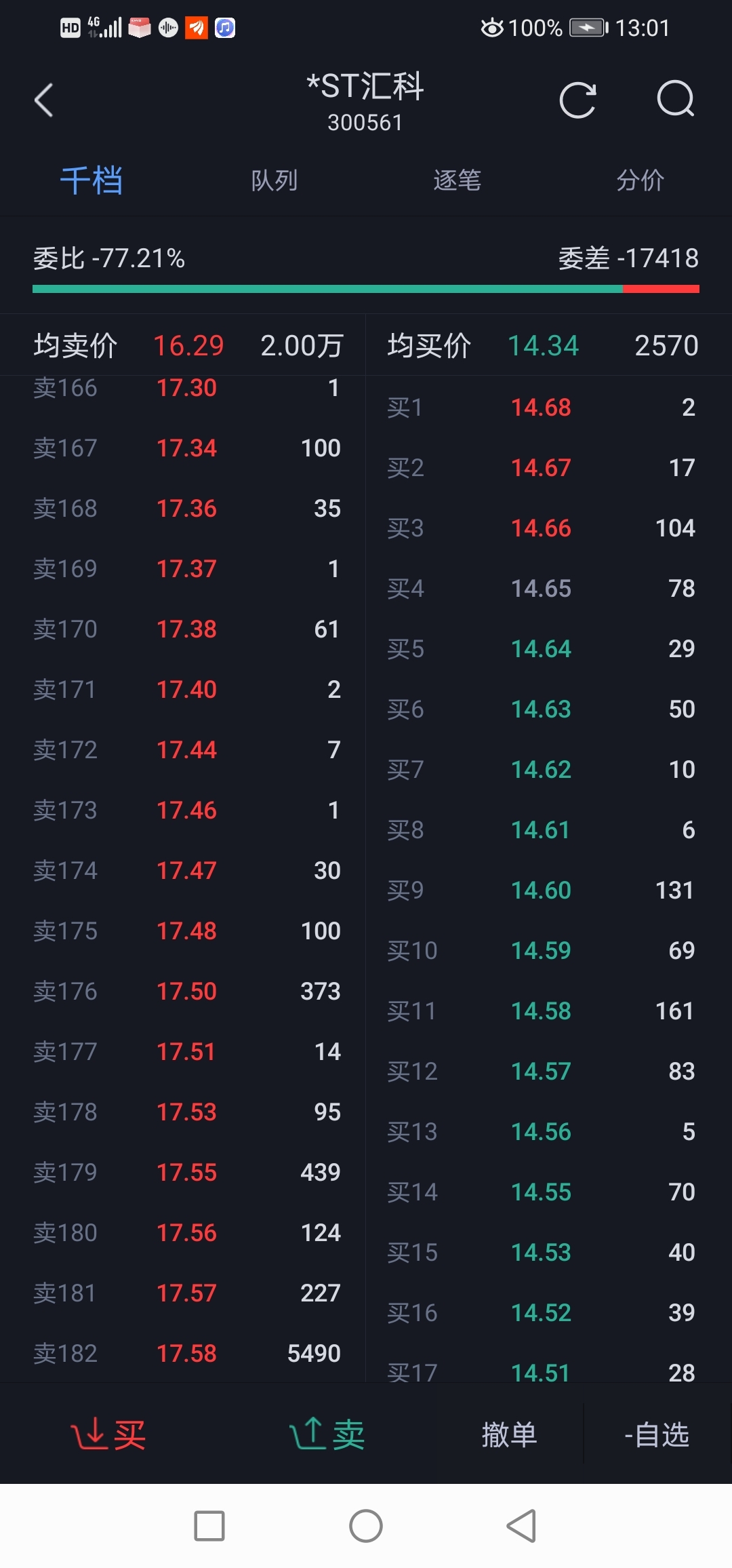 $*ST汇科(SZ300561)$ 卖买比8比1,算了,我走了。