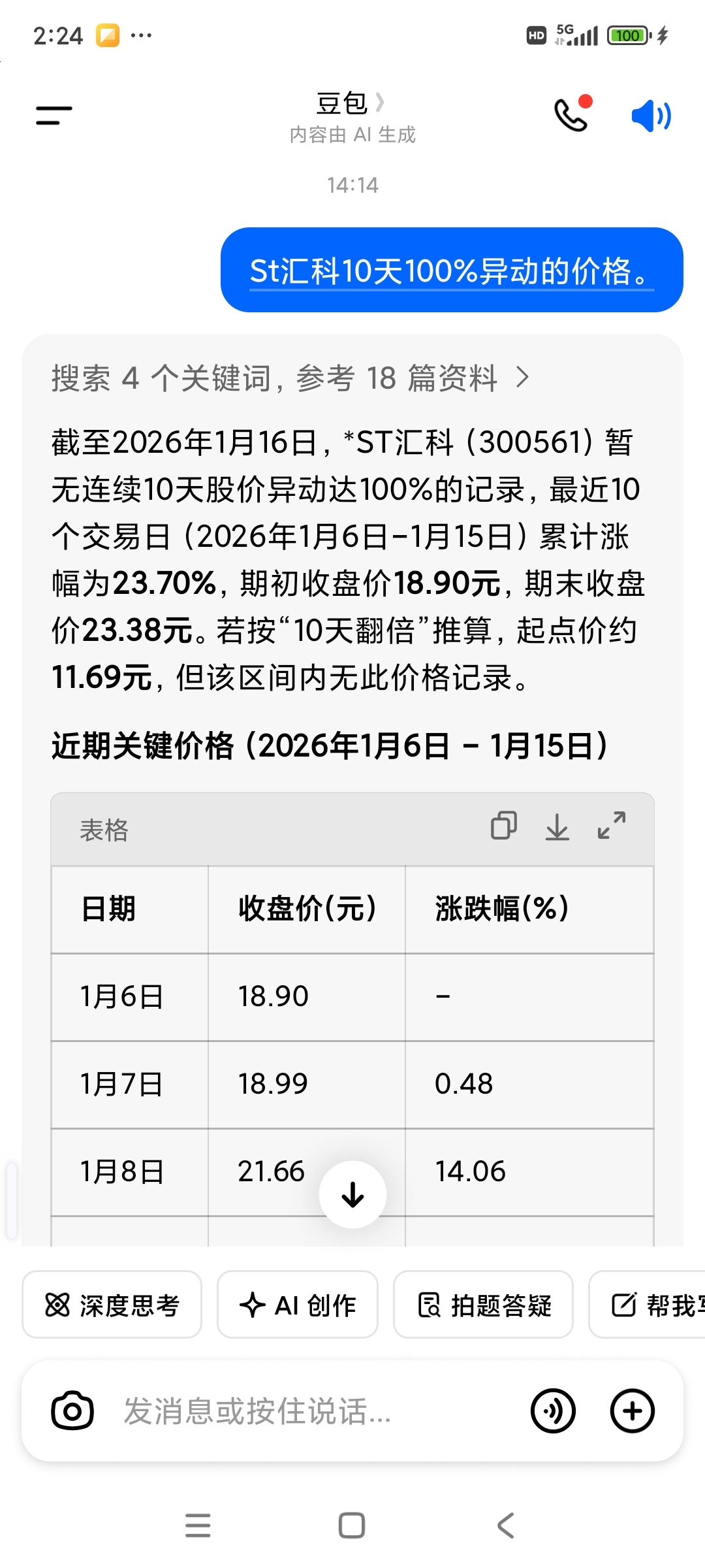 $*ST汇科(SZ300561)$ 10天的涨幅只有30%。远远达不到10点100%异动的标准。