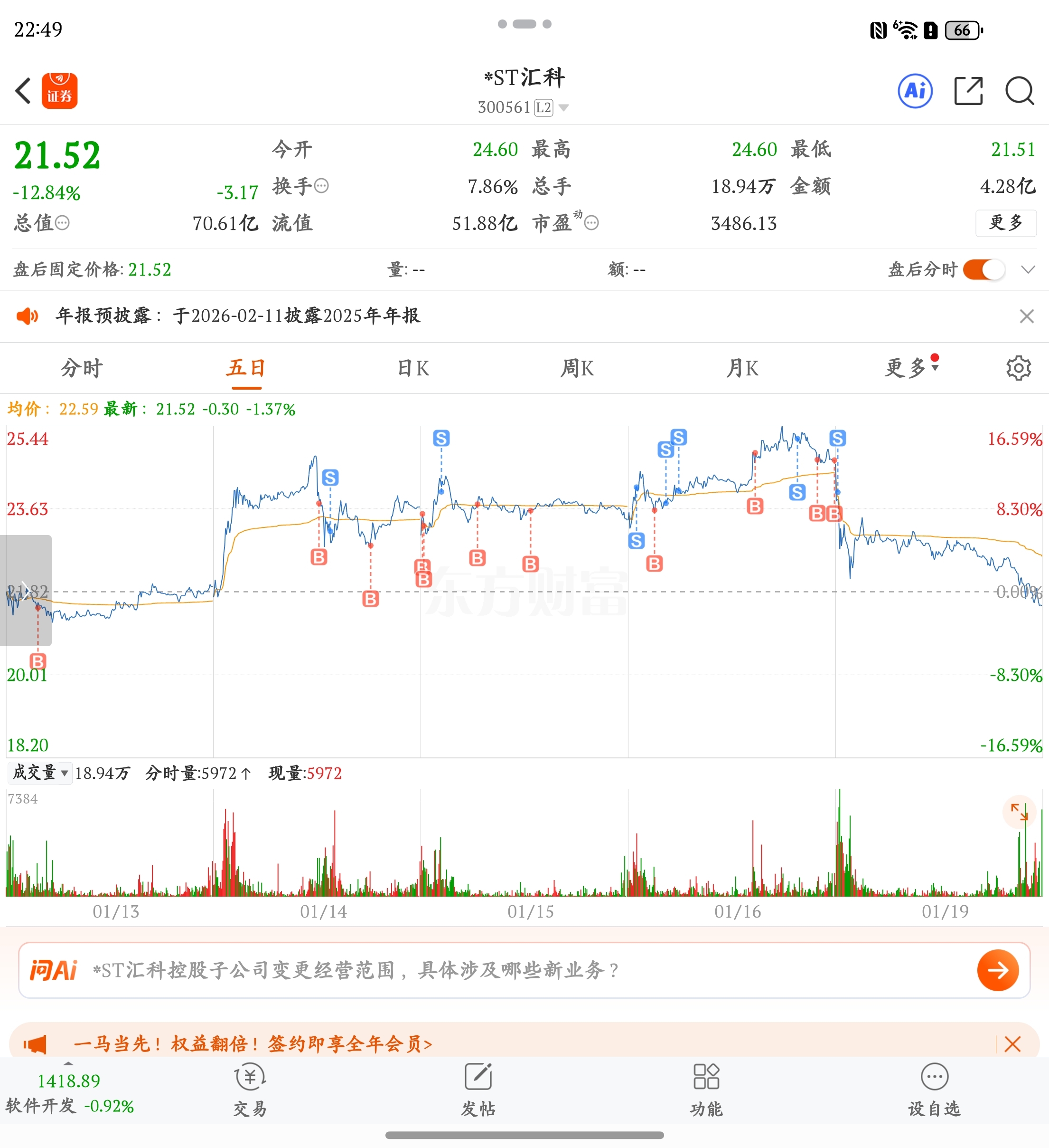 $*ST汇科(SZ300561)$ 走啦,你们玩。。