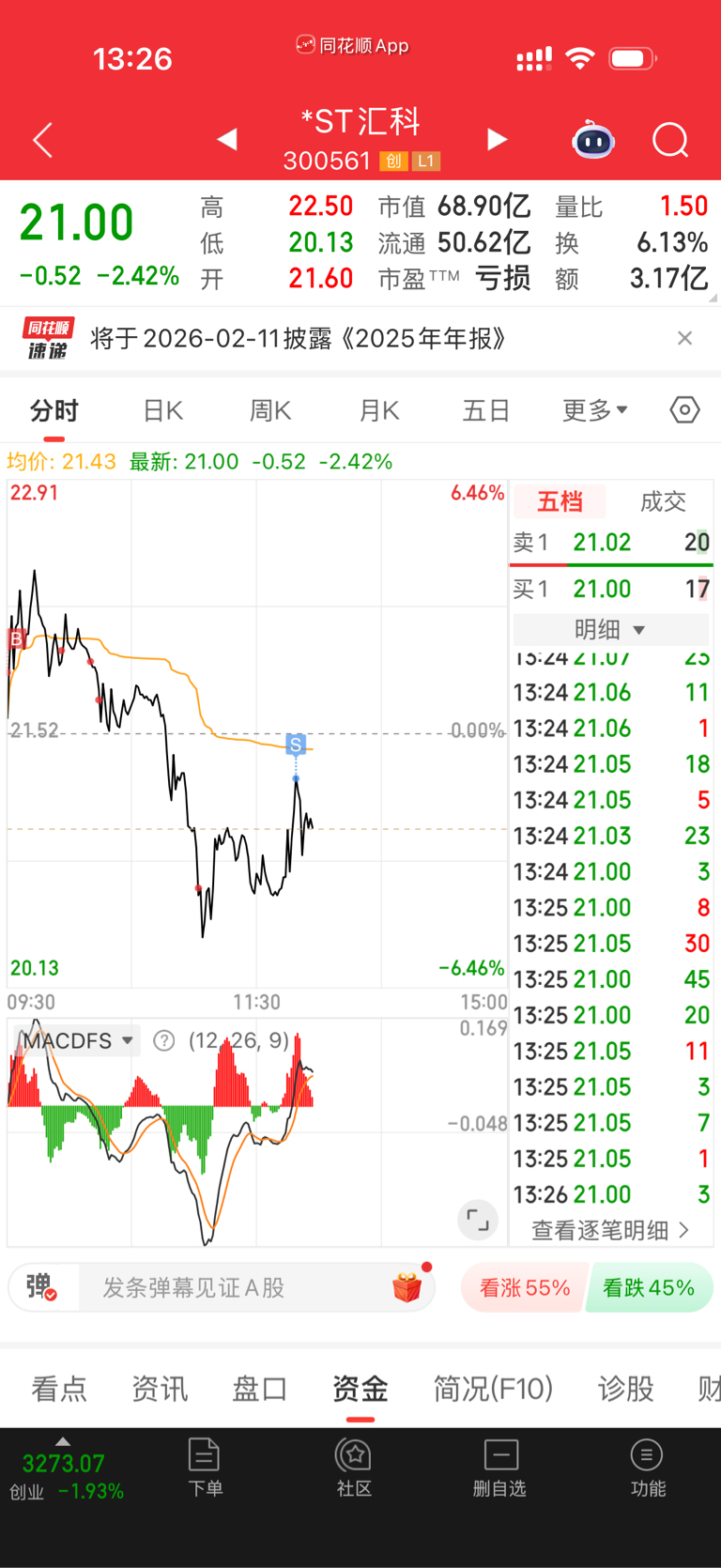 $*ST汇科(SZ300561)$ 顶不住了 早上低点补的卖了 高的补的继续套着