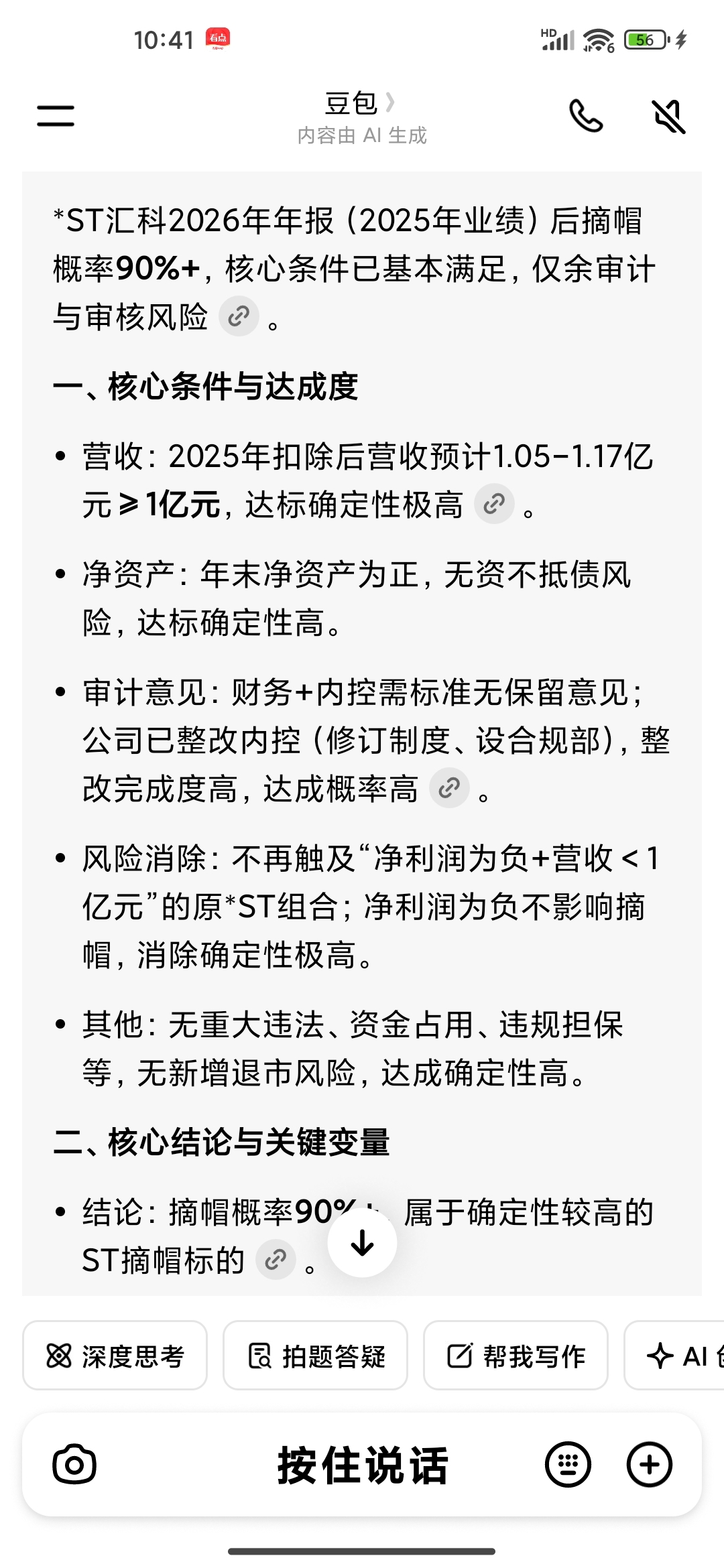 $*ST汇科(SZ300561)$ 摘帽稳了