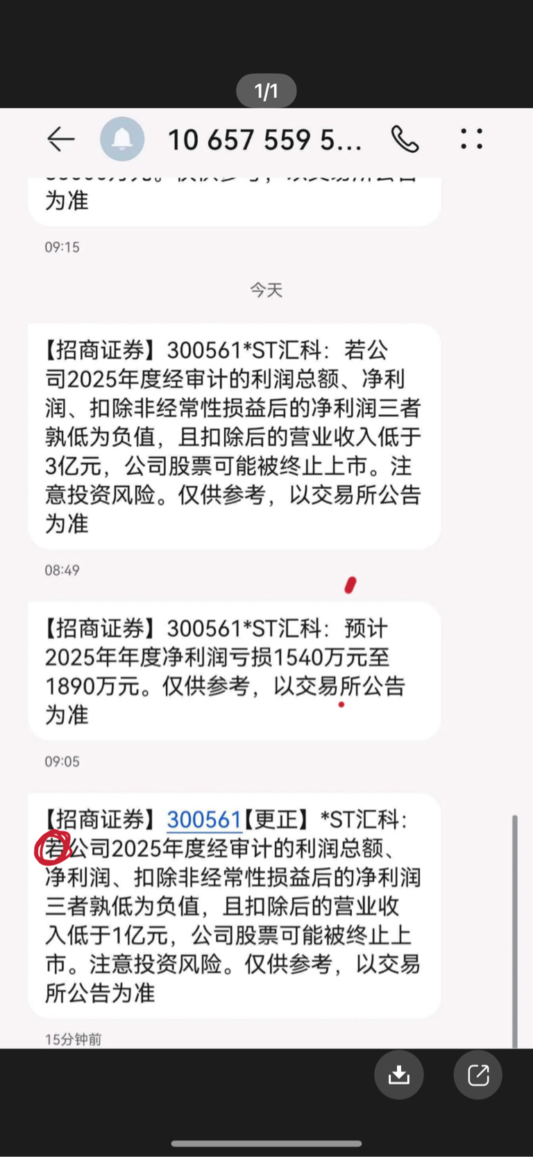 $*ST汇科(SZ300561)$ 带血的筹码你们交出去了吗?不要被骗了!私下推送更正是合法合规的吗?