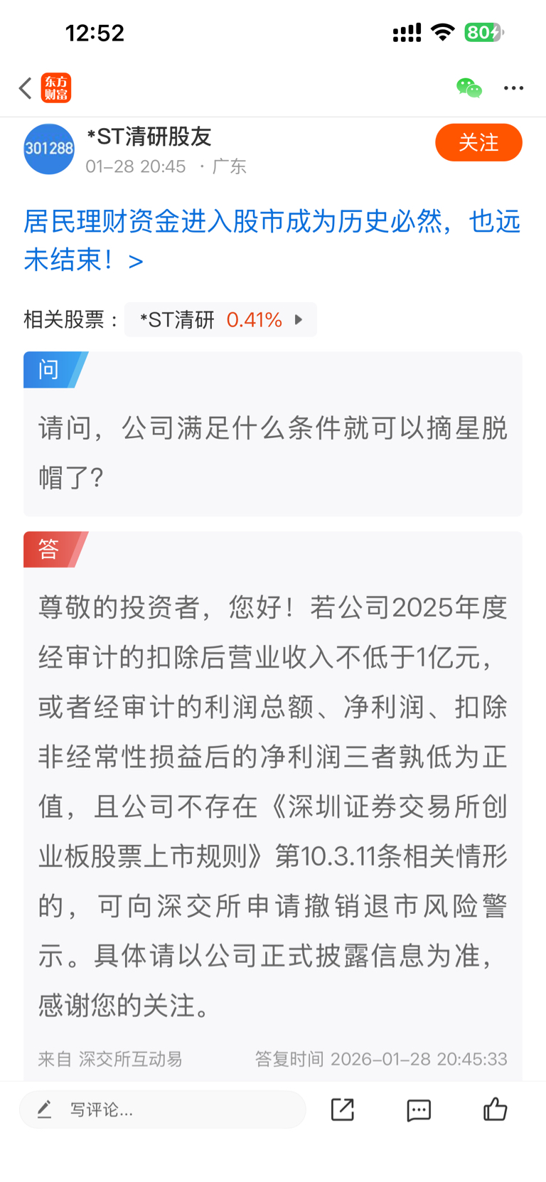 温馨提示: 1.根据《证券法》规定,禁止编造、传播虚假信息或者误导性信息,扰乱证券市场;2.用户在本社区发表的所有资料、言论等仅代表个人观点,与本网站立场无关,不对您构成任何投资建议。用户应基于自己的独立判断,自行决定证券投资并承担相应风险。《东方财富社区管理规定》