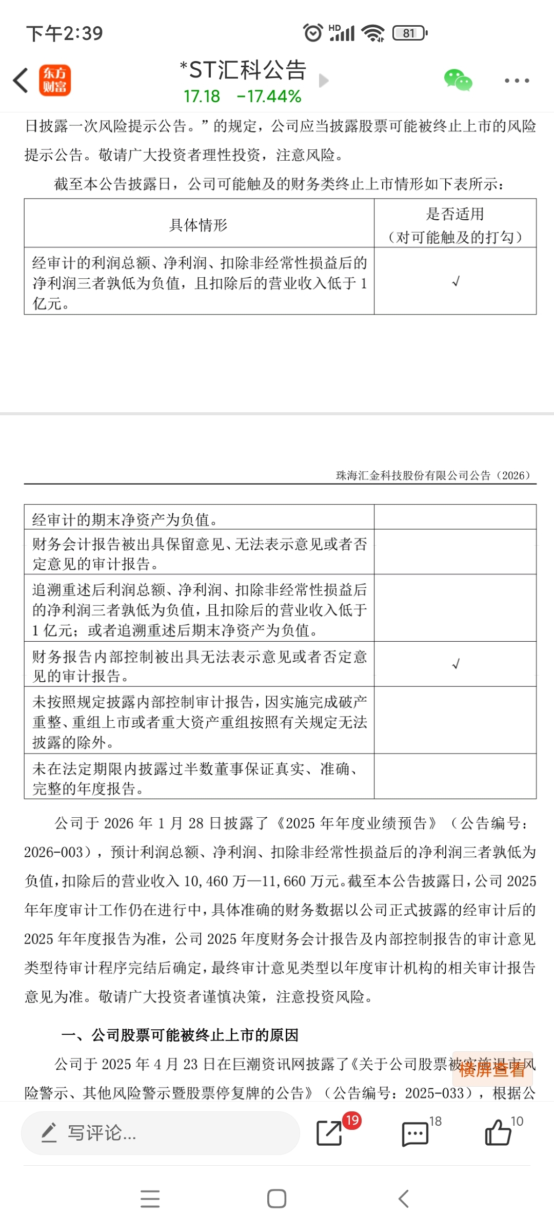 $*ST汇科(SZ300561)$ 去年业绩减亏仍是亏损!就看营业收入能否达到1亿元了!前年业绩预告虚增营收被查,记忆尤新啊!
